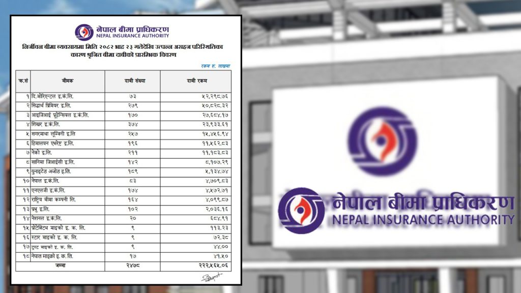 बीमा दाबीको अध्यावधिक विवरण सार्वजनिक, २४७८ आवेदनबाट २२ अर्ब २५ करोड दाबी (विवरणसहित)
