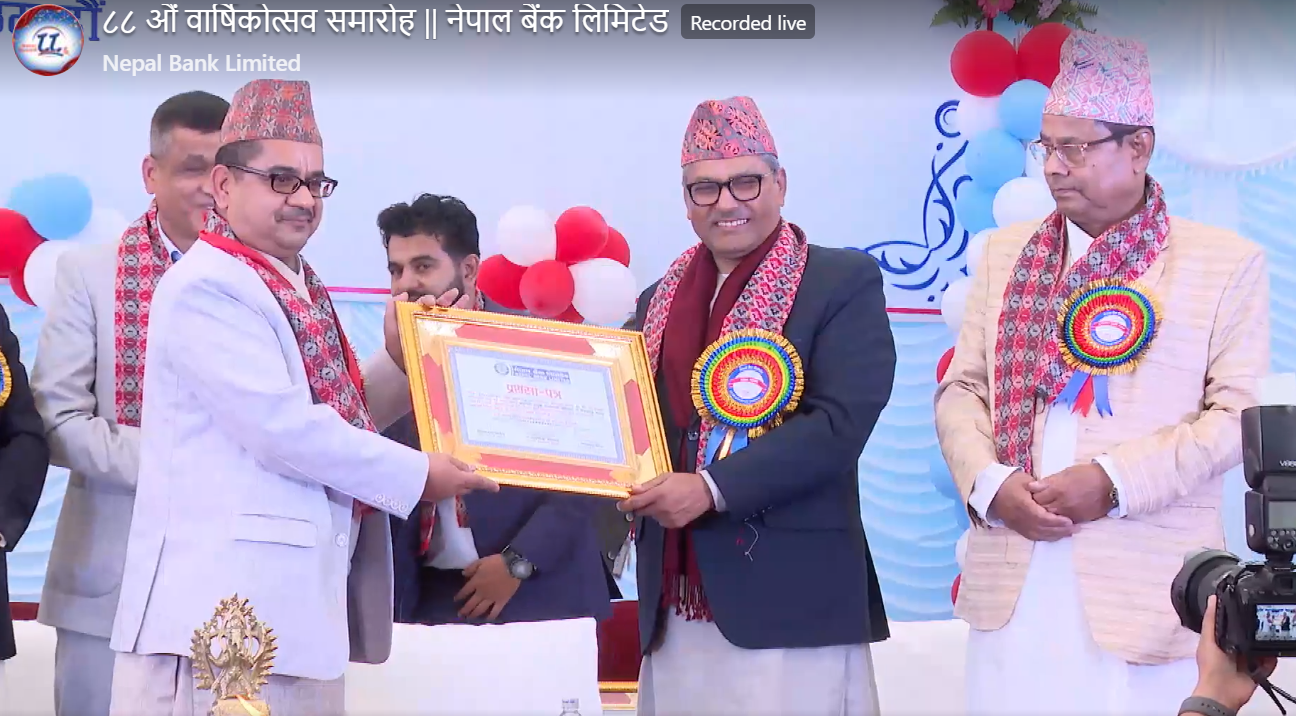 काठमाडाैँ। नेपाल बैंकको ८८औं वार्षिकउत्सवको अवसरमा नेपाल बैंकमा अनवरत रुपमा २५ देखि २० सम्म निरन्तर सेवा गर्दै आएका कर्मचारीलाई दिर्घसेवा पदकबाट सम्मान गरिएको छ । नेपाल सरकारका अर्थमन्त्री विष्णुप्रसाद पौडेल, नेपाल राष्ट्र बैंकका गभर्नर महाप्रसाद अधिकारी र बैंकका सञ्चालक समितिको अध्यक्ष डा. चन्द्रबाहादुर अधिकारीले पुरस्कार तथा पदक हस्तान्तरण गरेको हुन् । २५ वर्षदेखि सेवा गरेका (२०५६ सालदेखि) विनय कुमार गुप्ता, वेद प्रसाद ढुंगाना, निरुदेबी नापित, समुन्द्रि जम्दारलाई दिर्घ सेवापदक तथा पुरस्कारबाट सम्मान गरिएको छ । त्यस्तै २० वर्ष अटुट काम गरेका कर्मचारीहरुमा समता पन्त, लक्ष्मण पौडेल, विश्वराज बराल, प्रकाश अधिकारी, होम बहादुर खड्कालाई पनि दिर्घ सेवा पुरस्कार पदकबाट सम्मान गरिएको थियो ।