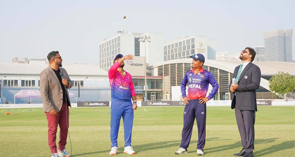 यूएईविरुद्ध टस हारेर ब्याटिङ गर्दै नेपाल
