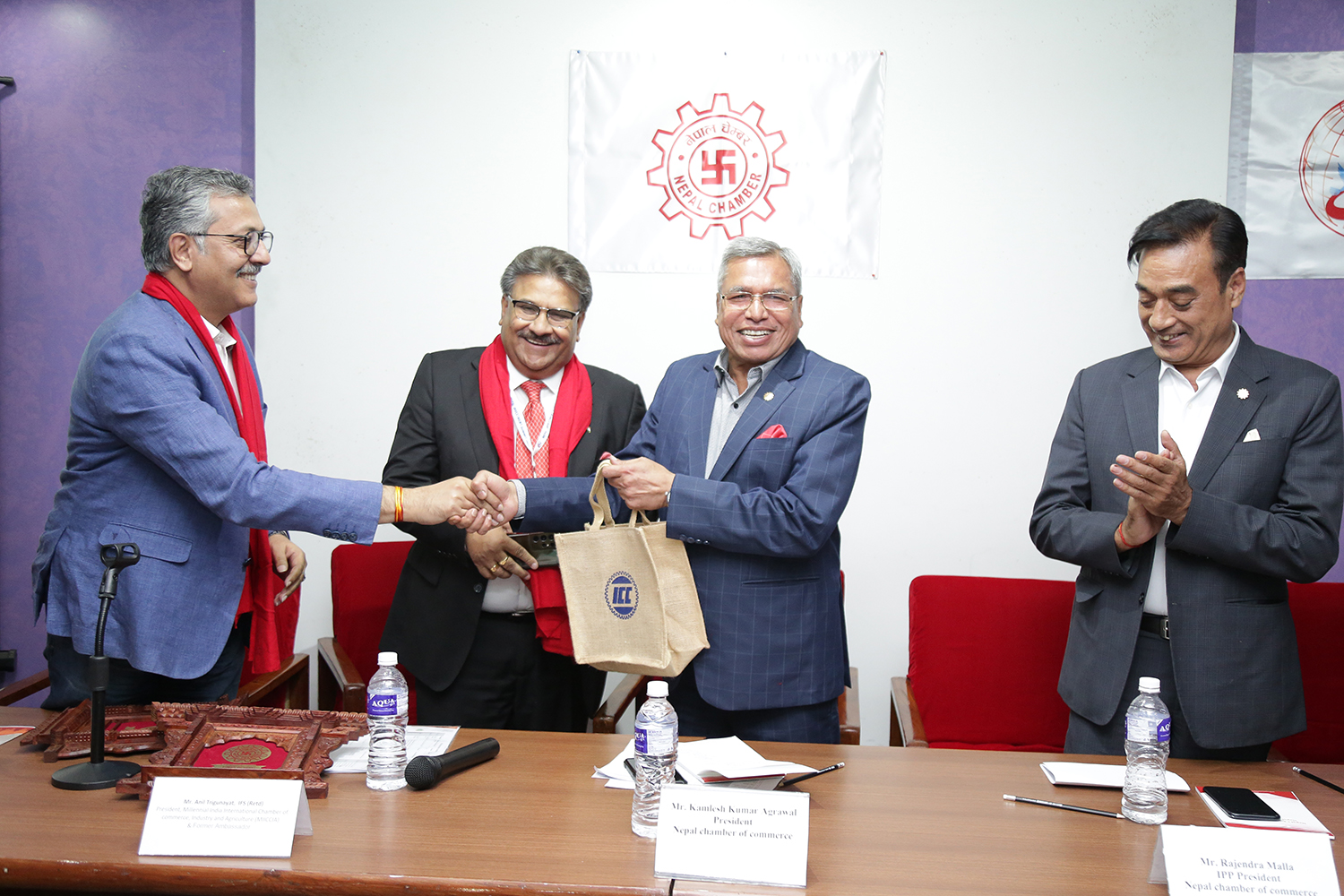 नेपाल चेम्बर अफ कमर्सको निमन्त्रणमा इण्डियन चेम्बर र मिलेनियल चेम्बर अफ कमर्सका पदाधिकारीहरू एवम् व्यवसायिक प्रतिनिधिमण्डल नेपाल आएका हुन् । दुवै चेम्बरका पदाधिकारीलाई नेपाल चेम्बर अफ कमर्सका अध्यक्ष कमलेश अग्रवालले जमलस्थित चेम्बर भवनमा स्वागत गरेका थिए ।