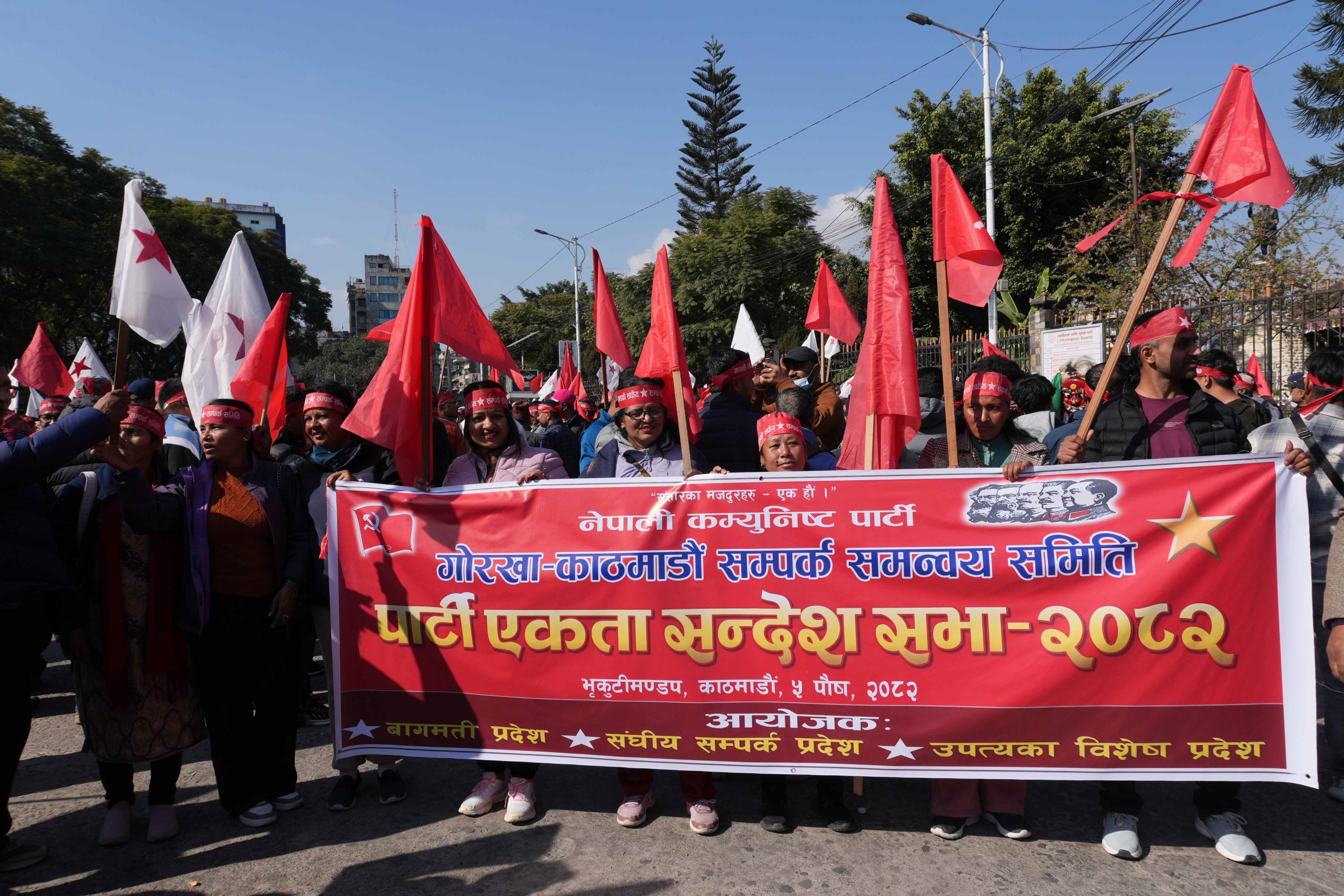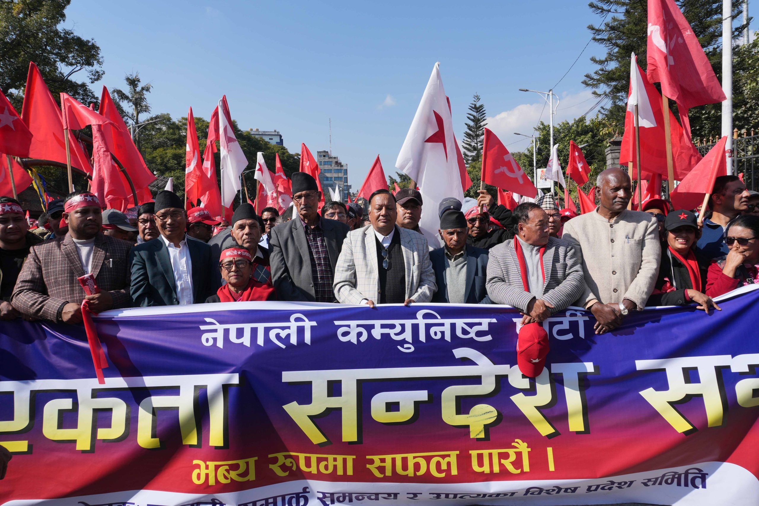 काठमाडौं । नेपाली कम्युनिस्ट पार्टीले काठमाडौंमा आज एकता सन्देशसभा आयोजना गरेको छ ।