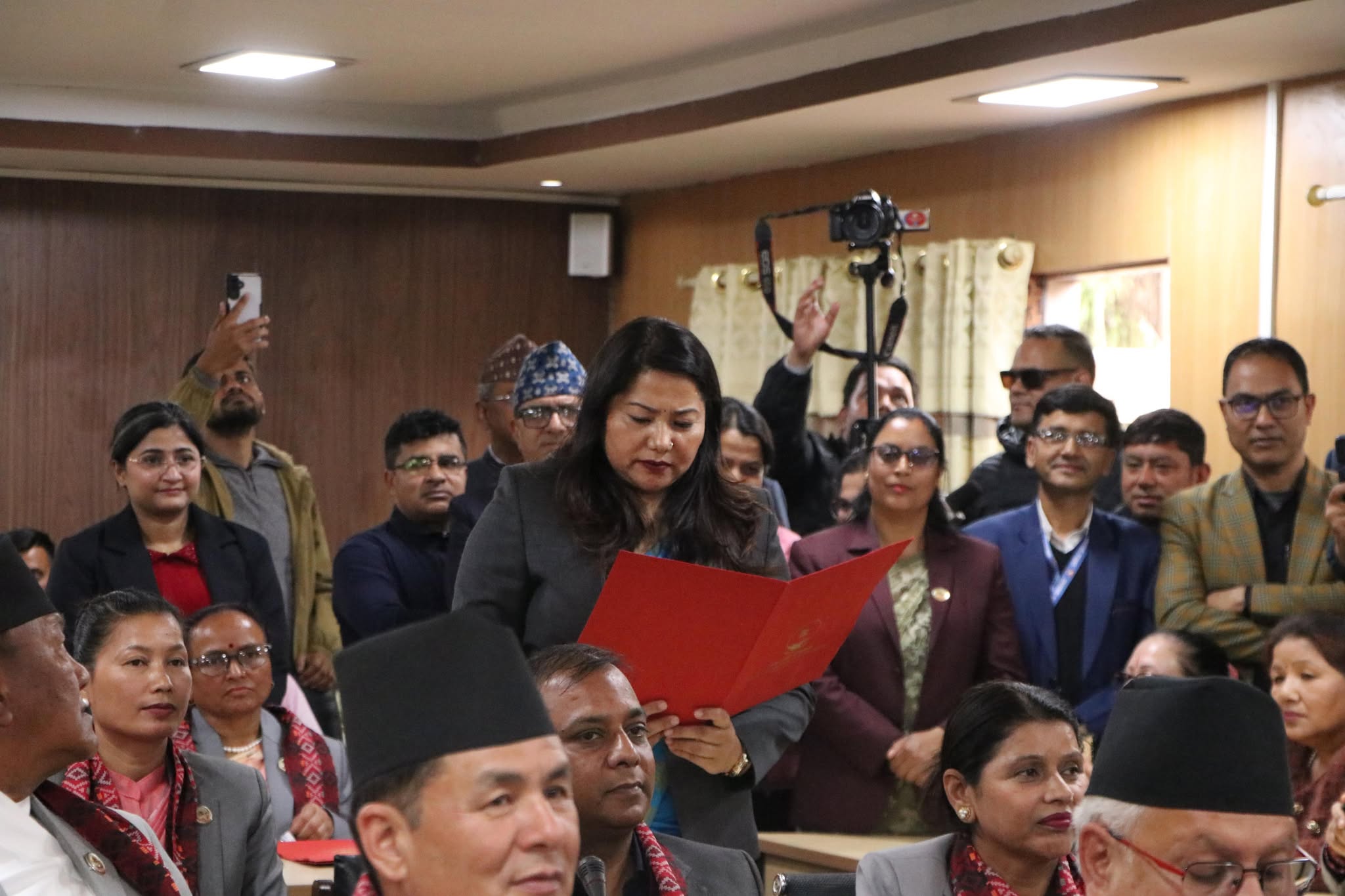 सिंहदरबारस्थित कानुन न्याय तथा मानव अधिकार समितिको हलमा सोमबार सांसदहरूले पद तथा गोपनीयताको शपथ लिएका हुन्। विशेष समारोहका बिचमा राष्ट्रिय सभाका अध्यक्ष नारायणप्रसाद दाहालले उनीहरूलाई पद तथा गोपनीयताको शपथ दिलाएका हुन् ।