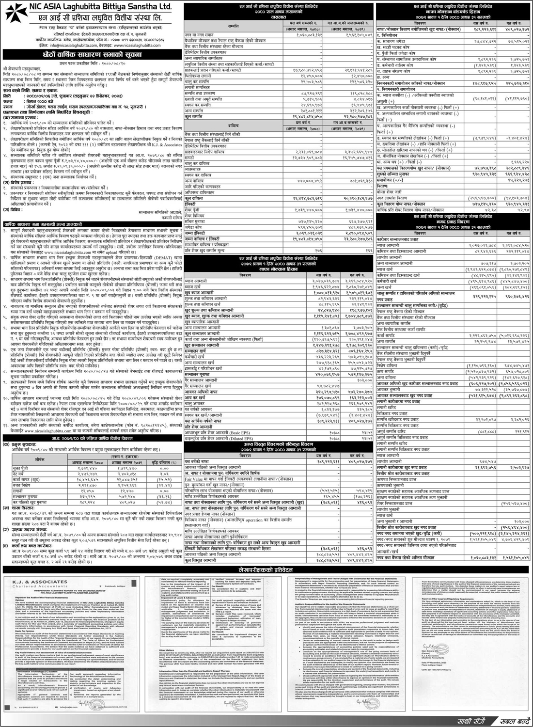 काठमाडौं । प्रस्तावित लाभांश पारित गर्न एनआईसी एशिया लघुवित्तले वार्षिक साधारण सभा आह्वान गरेको छ ।