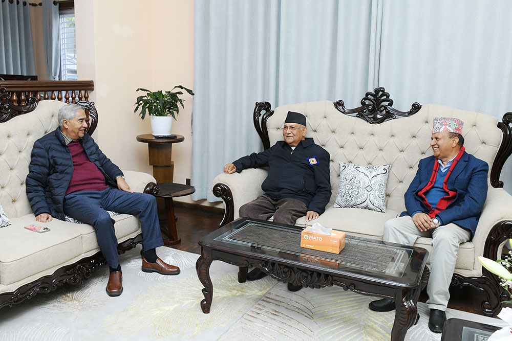 काठमाडौँ । नेपाली काँग्रेसका सभापति शेर बहादुर देउवा र नेकपा एमालेका अध्यक्ष केपी शर्मा ओलीबीच भेटवार्ता भएको छ ।
