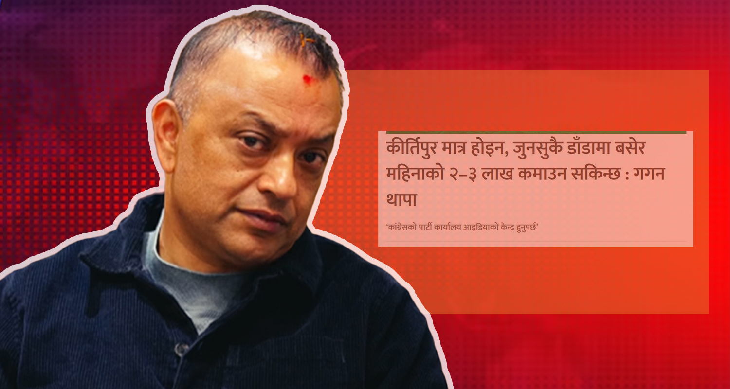काठमाडौं । नेपाली कांग्रेसका सभापति गगन थापाले आफुले किर्तिपुरको डाँडामा बसेर महिनाको २–३ लाख कमाउन सकिन्छ भनेर यत्तिकै नभनेको बताएका छन् । नेपाली कांग्रेसको...