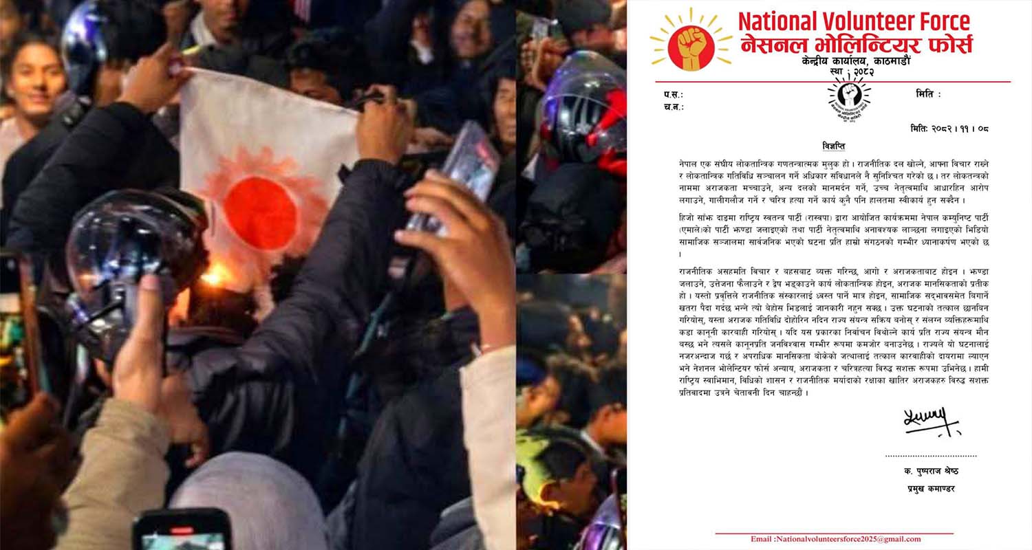 एमालेको झण्डा जलाउने रास्वपा कार्यकर्तालाई कारबाही नभए प्रतिवादमा उत्रिने भोलिन्टियर फोर्स चेतावनी