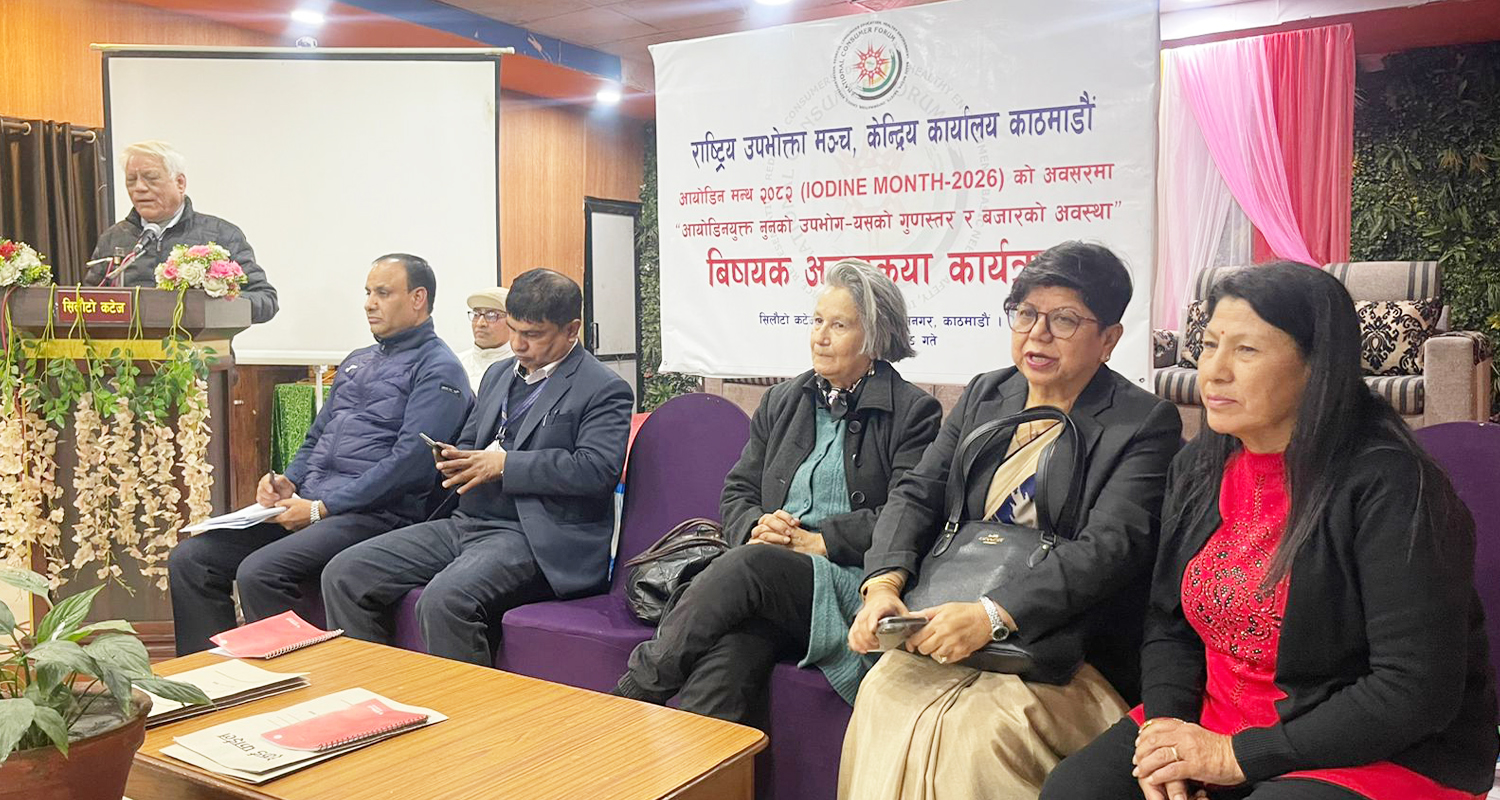 काठमाडौं । राष्ट्रिय उपभोक्ता मञ्चले दैनिक अनिवार्य रूपमा उपभोग गर्नुपर्ने परिमाण भन्दा बढी आयोडिनयुक्त नुन नखान आम उपभोक्तामा अपिल गरेको छ । आयोडिन मन्थ, २०...