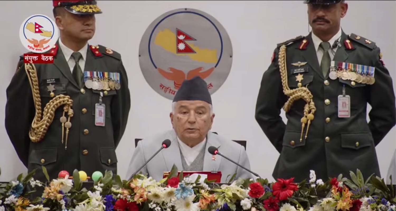 काठमाडौं । राष्ट्रपति रामचन्द्र पौडेलले संघीय संसदको दुवै सदनको संयुक्त बैकठलाई आज सम्बोधन गरेका छन् । गत २१ फागुनमा सम्पन्न प्रतिनिधिसभा सदस्यको निर्वाचनपछि...