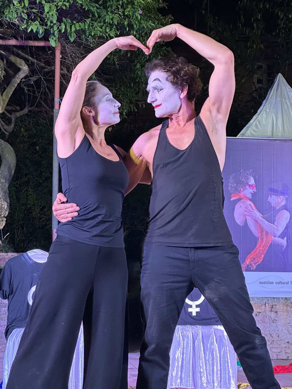 मनकामना केबलकारको प्रायोजन तथा नेपालका लागि अस्ट्रियाको अवैतनिक वाणिज्यदूत राजेशबाबु श्रेष्ठको सहयोग रहेको कार्यक्रममा नयाँ दिल्लीस्थित अस्ट्रियन राजदूतावास अन्तर्गतको अस्ट्रियन कल्चरल फोरमका डाइरेक्टर माइकल पल र उनकी श्रीमती इरेना पल पनि सहभागी थिए । प्यान्टोमाइम रंगमञ्चीय प्रस्तुति हो । यसमा कलाकारको अनुहारको भाव र शारीरिक हाउभाउमार्फत कथा प्रस्तुत गरिन्छ ।