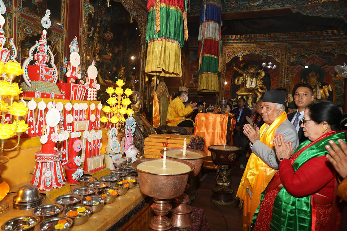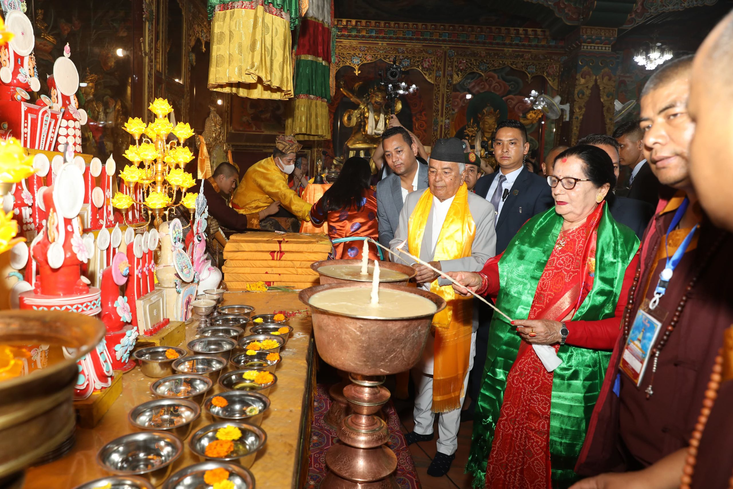 काठमाडौं । राष्ट्रपति रामचन्द्र पौडेल प्रथम महिला सबिता पौडेलले पच्चीस सय ६९ औँ बुद्धजयन्तीका अवसरमा बौद्धनाथस्थित गुरु ल्हाखाङ गुम्बामा भगवान् गौतमबुद्धको पूजा, आराधना गरेका छन् ।