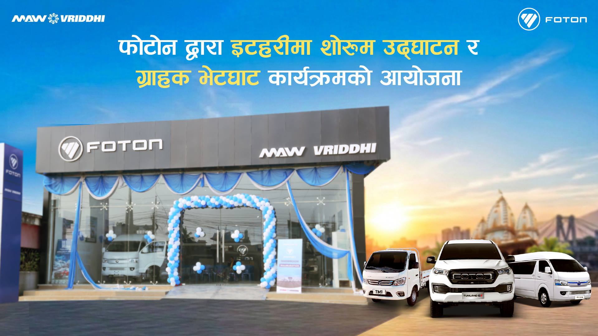 कम्पनी फोटोन सवारीसाधनहरूको आधिकारिक वितरक हो र विश्वसनीयता तथा उत्कृष्ट प्रदर्शनमार्फत ग्राहक सन्तुष्टि प्रदान गर्न क्रियाशील छ।