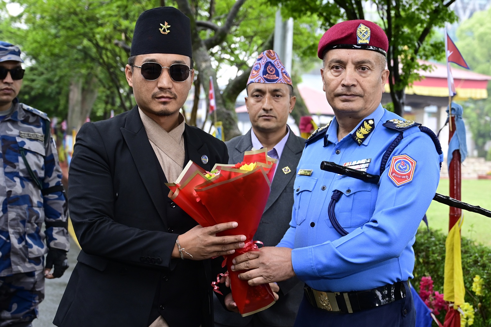 गृहमन्त्री गुरूङलाई नेपाल प्रहरी प्रधान कार्यालयमा आईजीपी दानबहादुर कार्कीसहितले स्वागत गरेका थिए ।