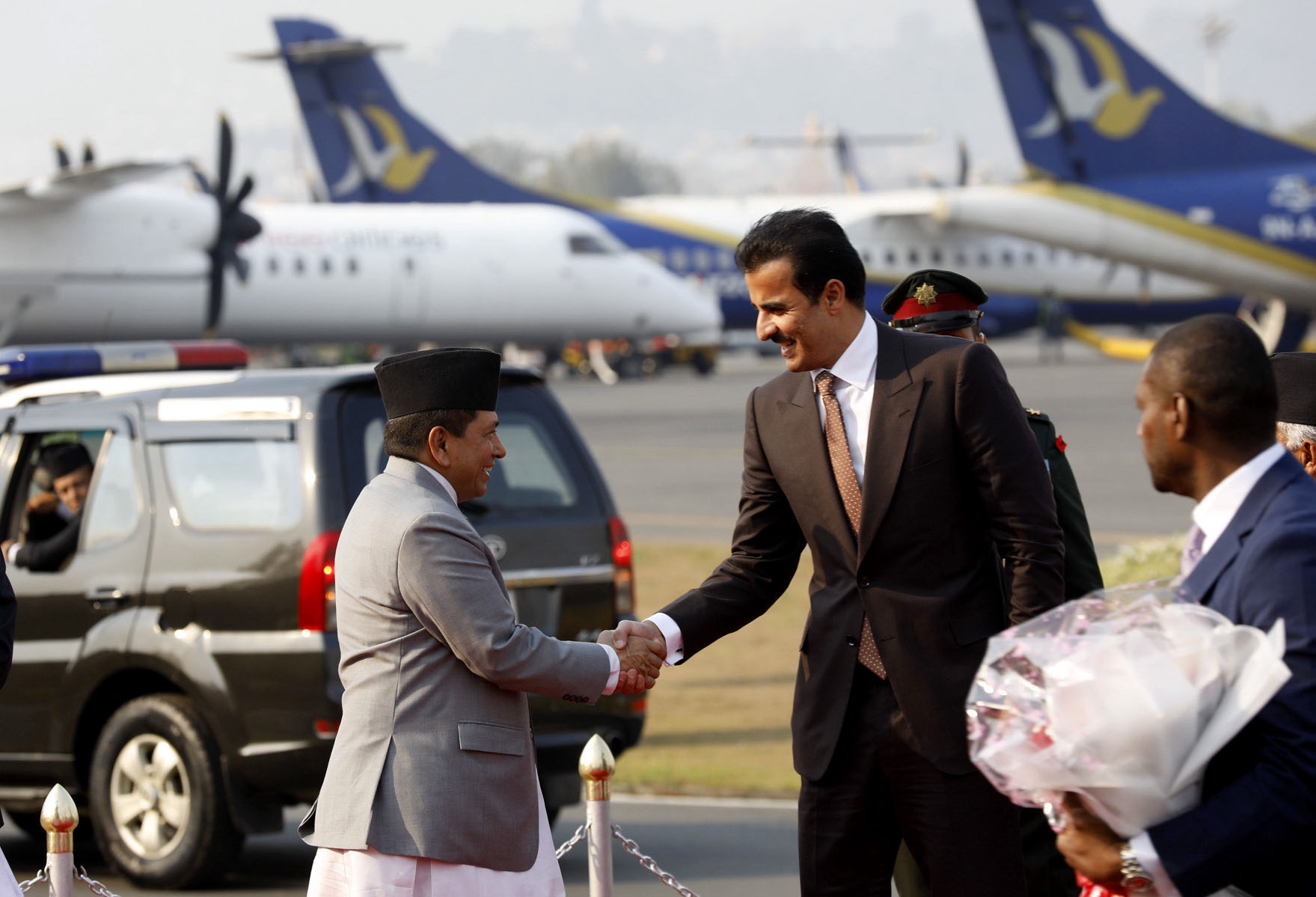 काठमाडौं । कतारका अमिर शेख तमिम बिन हमाद अल थानी दुई दिने नेपाल भ्रमणको लागि काठमाडौं आएका छन् । राष्ट्रपति रामचन्द्र पौडेलको मैत्रीपूर्ण निमन्त्रणामा उनी नेपाल भ्रमणमा आएका हुन् । उनलाई त्रिभुवन अन्तर्राष्ट्रिय विमानस्थलको अतिविशिष्ट कक्षमा राष्ट्रपति पौडेलले स्वागत गरे ।