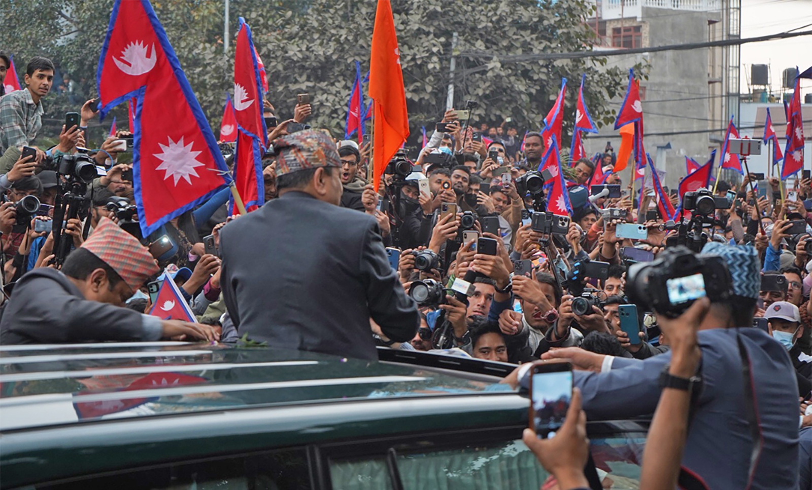 पूर्वराजालाई स्वागत गर्न दिउँसोदेखि नै राजावादी विभिन्न स्थानमा भेला भएर र्यालीसहित विमानस्थलको द्वारसम्म पुगेका थिए । विमानस्थलको द्वारमा आफ्नो गाडीमा उभिएर पूर्वराजाले आफ्नो समर्थकहरुको अभिनन्दन स्वीकार गरेका थिए ।