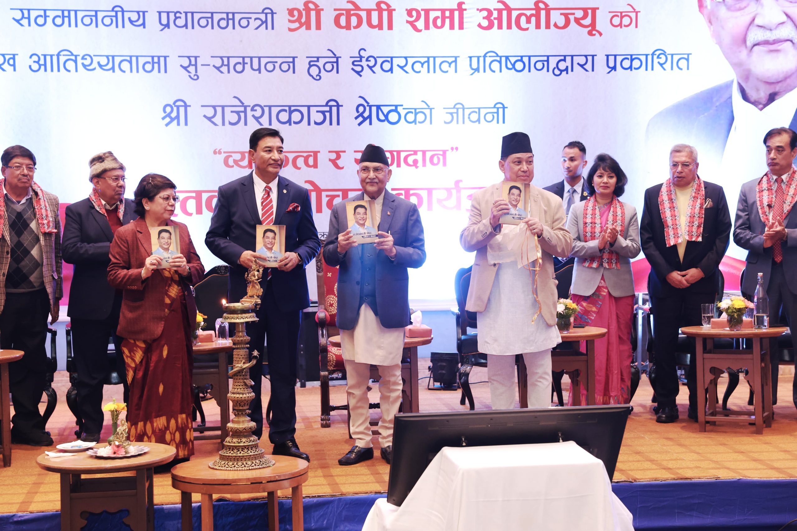 ईश्वरलाल प्रतिष्ठानद्वारा प्रकाशित व्यवसायी तथा समाजसेवी राजेशकाजी श्रेष्ठको जीवनीमा आधारित ‘व्यक्तित्व र योगदान’ पुस्तकको आज लोकार्पण गर्दै प्रधानमन्त्री ओलीले हिजो सँगै रहेर मस्यौदा गरेका केही मान्छेहरूले अहिले अभिव्यक्ति स्वतन्त्रता हनन् हुन लाग्यो भनेर सामाजिक सञ्जाल विधेयकविरूद्ध चर्का कुरा गरेर हल्ला गरेको टिप्पणी गरे ।