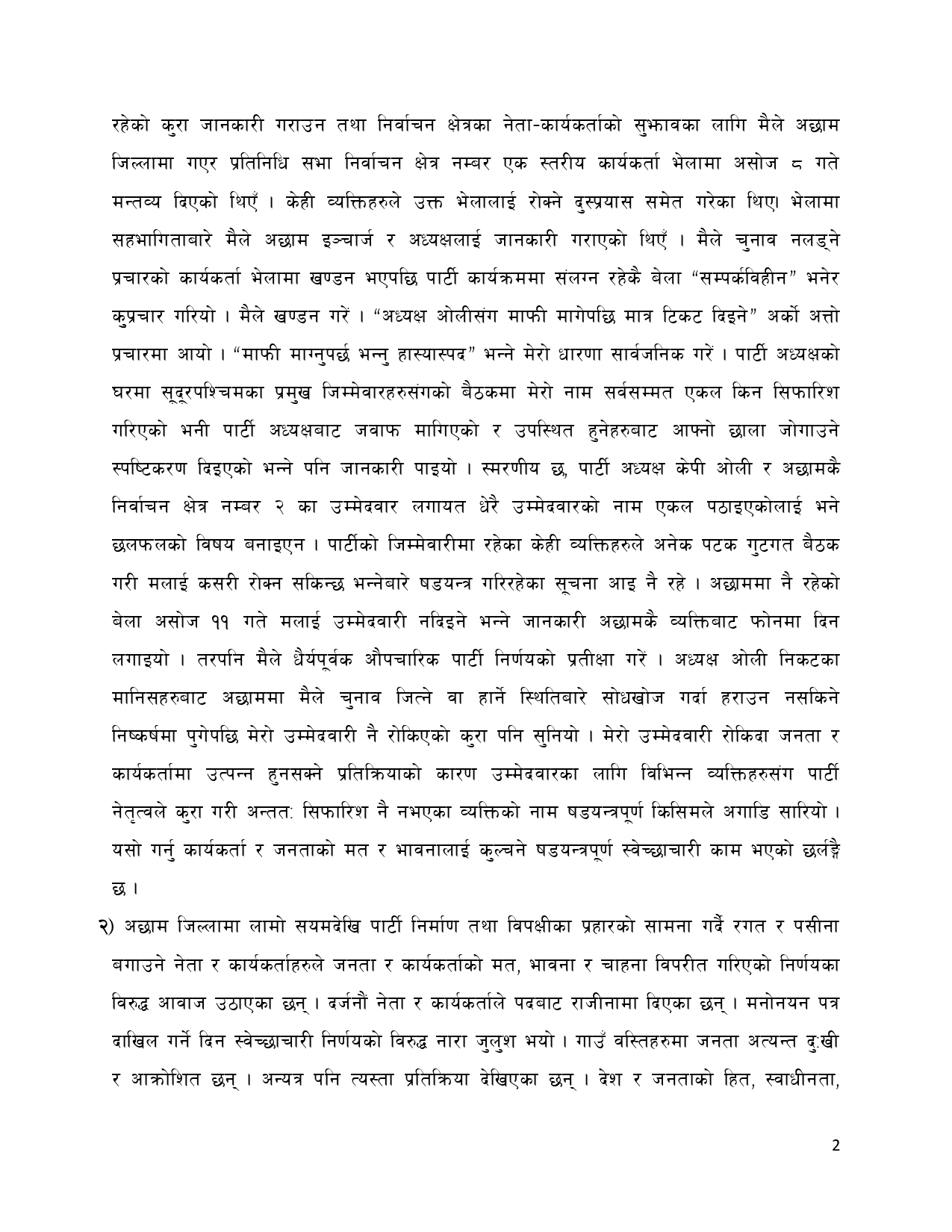 टिकट नपाएपछि पहिलाेपटक पत्रकार सम्मेलन गर्दै रावलले ओलीकाे खराे आलाेचना गरेका छन् । उनले ओलीले गरेका असंवैधानिक कामकाे आफुले विरोध गरेका कारण ओलीले टिकट नदिएको बताए ।