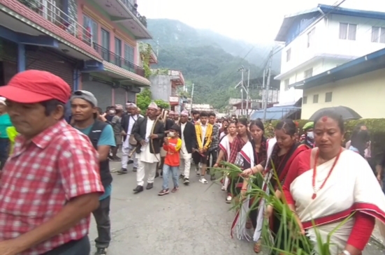 उनीहरूले पञ्चेबाजासहित बजार परिक्रमा गरेर धान रोपेको अभियन गरी जात्रा निकालेका थिए । बाजाको तालमा उनीहरूले धान रोपेको अभिनय गरेका थिए ।