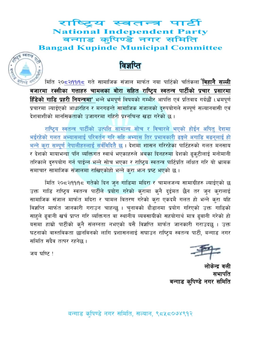 साथै, रास्वपाले घटनाको वास्तविकता छानबिनको लागि प्रशासनलाई सघाउन तयार रहेको पनि जनाएको छ ।
