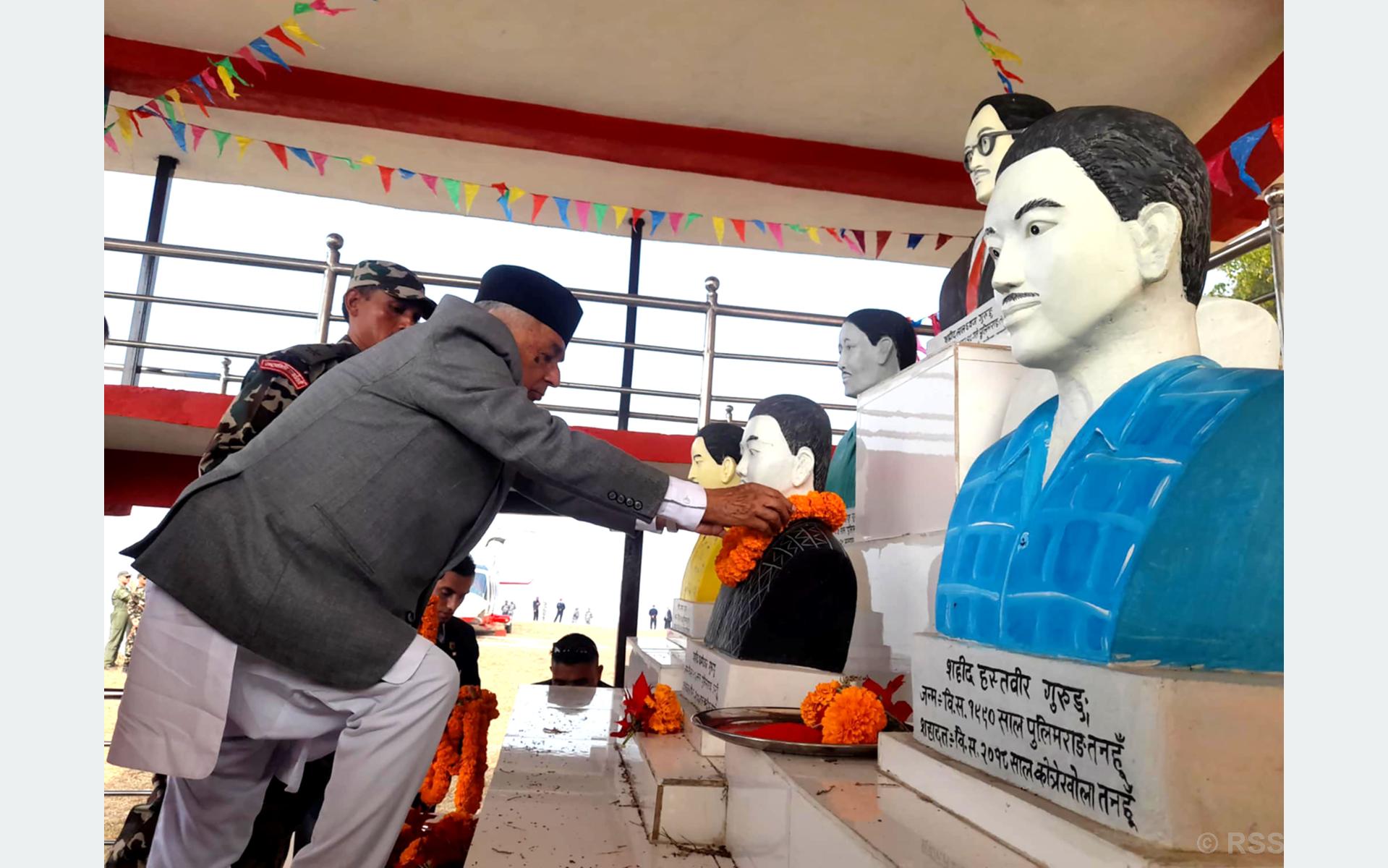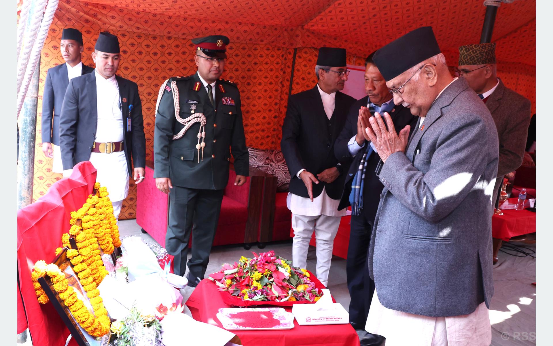 लैनचौरस्थित शहिद स्मारक पुगेर प्रधानमन्त्री केपी शर्मा ओलीसहित सरकारका उच्चपदस्थ अधिकारीहरूले शहीदहरूप्रति सम्मान र श्रद्धाभाव प्रकट गरेका छन् ।