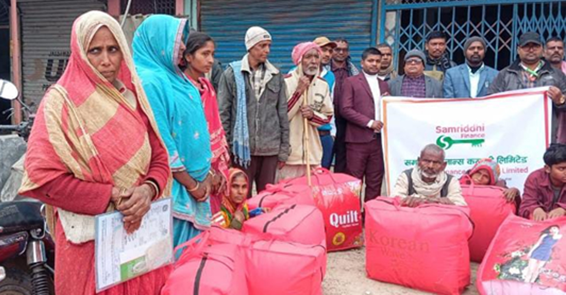 सिरहा । समृद्धि फाइनान्सले कसहा शाखाबाट न्यानो कपडा वितरण कार्यक्रमअन्तर्गत शाखा कार्यालय आसपासको धनगढीमाई नगरपालिका-६, ७ र ८ का अति विपन्न, असहाय जेष्ठ नागरिकहरूलाई फाइबर सिरक वितरण गरेको छ ।