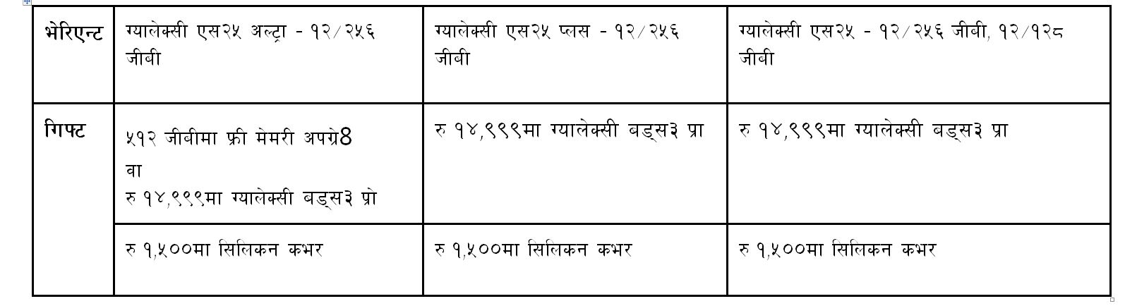 ग्यालेक्सी एस२५+ र ग्यालेक्सी एस२५ बेस प्रि–अर्डर गर्दा ग्राहकहरूले रु ३१,९९९ मूल्य रहेको ग्यालेक्सी बड्स३ प्रो रु १४,९९९मा र रु ३,३९९ मूल्य रहेको सिलिकन कभर पनि रु १,५०० मा प्राप्त गर्न सक्ने छन्।