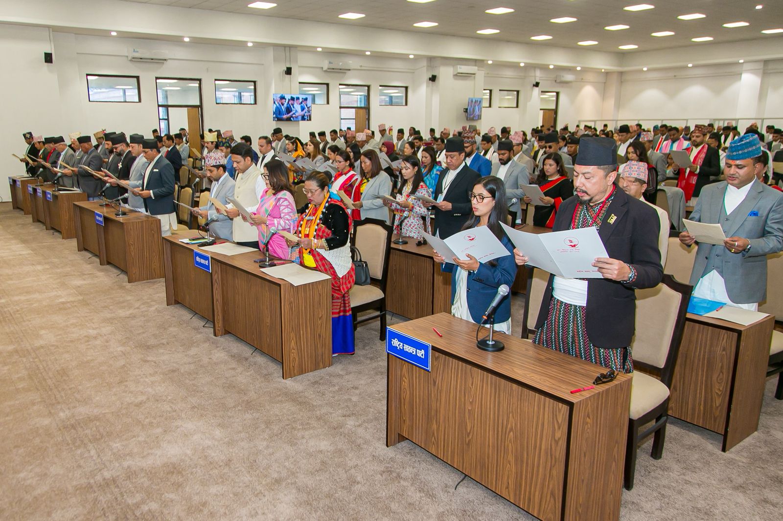 यी ३३ तस्बिरमा हेर्नुहोस् सांसदहरूको सपथ कार्यक्रम–