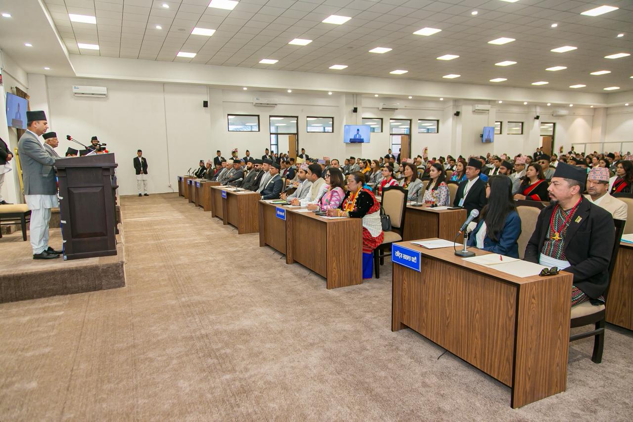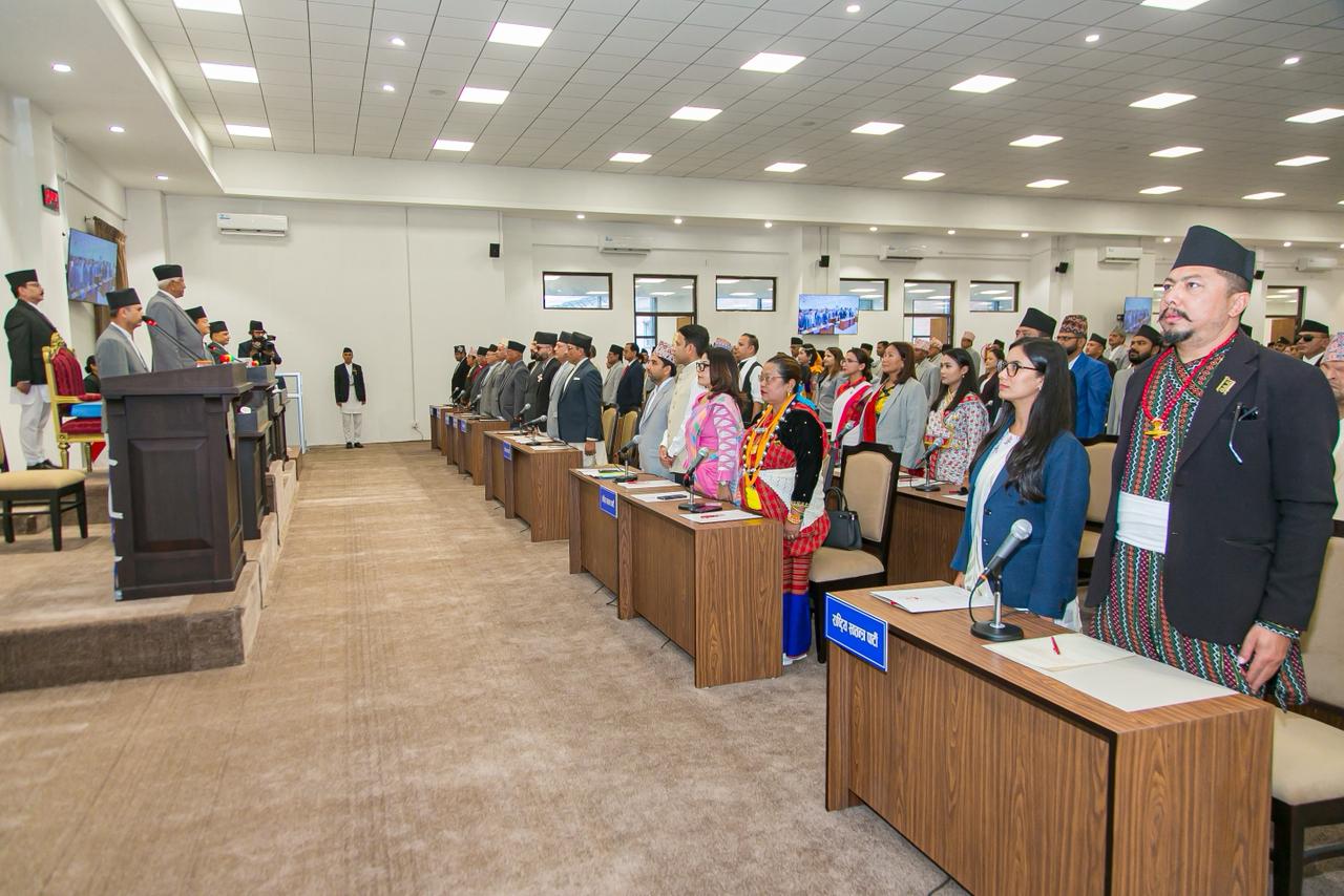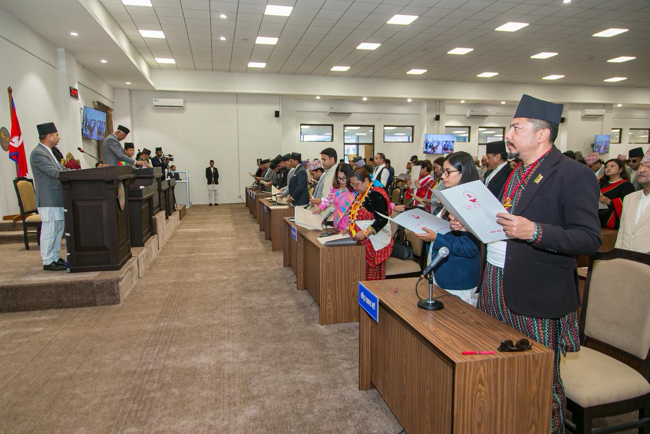 प्रतिनिधिसभाका ज्येष्ठ सदस्य अर्जुननरसिंह केसीले पद तथा गोपनीयताको शपथ गराए ।