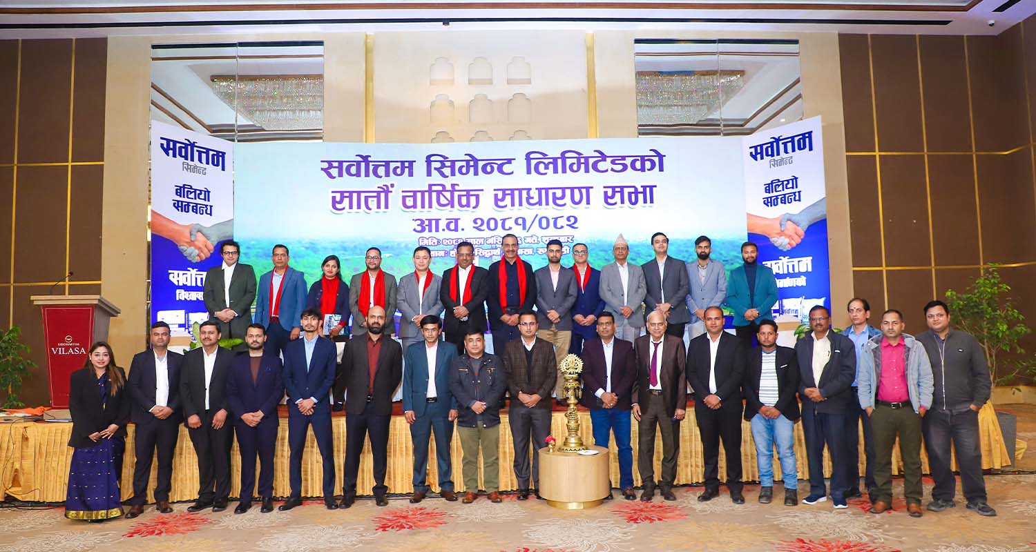 भैरहवा । सर्वोत्तम सिमेन्ट लिमिटेडको सातौँ वार्षिक साधारणस भैरहवामा सम्पन्न भएको छ।७६ प्रतिशतभन्दा बढी सेयरधनीहरुको उपस्थिति रहेको गत आर्थिक वर्षको मुनाफाबाट प्रस्तावित २० प्रतिशत लाभांश पारित गरेको छ ।