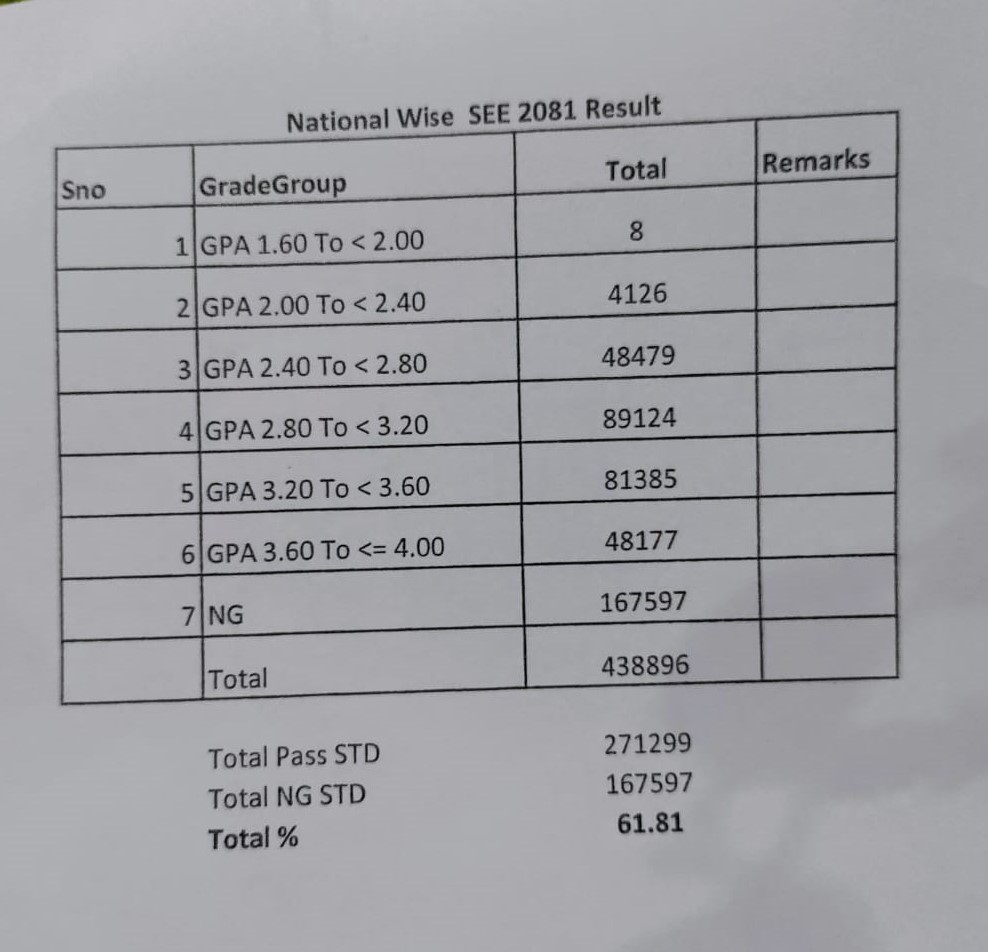 यस्तै, ८९ हजार १ सय २४ जनाले २.८ देखि ३.२ जीपीए ल्याएका छन् भने २.४ देखि २.८ जीपीए ल्याउने परीक्षार्थीको सङ्ख्या ४८ हजार ४ सय ७९ रहेको बोर्डले पत्रकार सम्मेलनमार्फत जानकारी दिएको हो ।