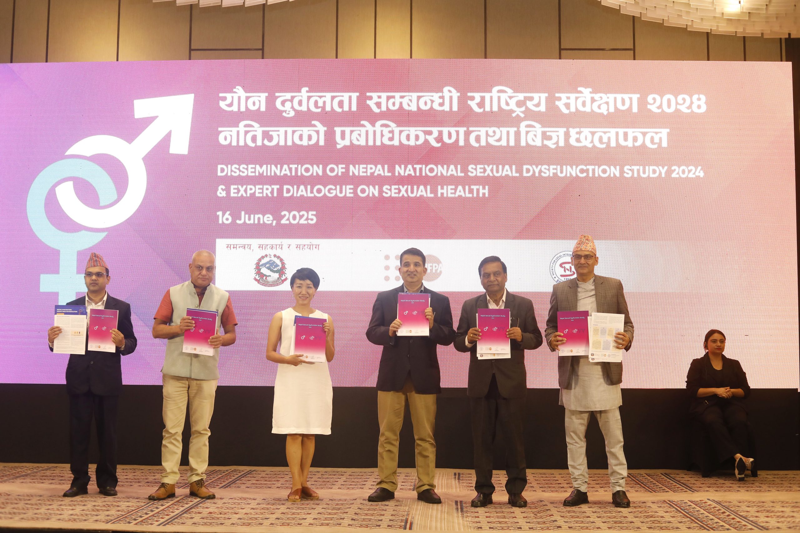 कार्यक्रममा ‘यौन दुर्वलतासम्बन्धी राष्ट्रिय सर्वेक्षण–२०२४’ नतिजा सार्वजनिक गर्दै ३० वर्षभन्दा माथिका ७२ प्रतिशत पुरुष र ६७ प्रतिशत महिलामा यौन दुर्वलता रहेको पाइएको प्रमुख अनुसन्धानकर्ता डा खेमबहादुर कार्कीले जानकारी दिए । उनका अनुसार विश्वमा करिब महिलामा ४९ प्रतिशत र पुरुषमा ४३ प्रतिशतले कुनै न कुनै प्रकारको यौन दुर्वलता रहेको तथ्याङ्क रहेको छ ।