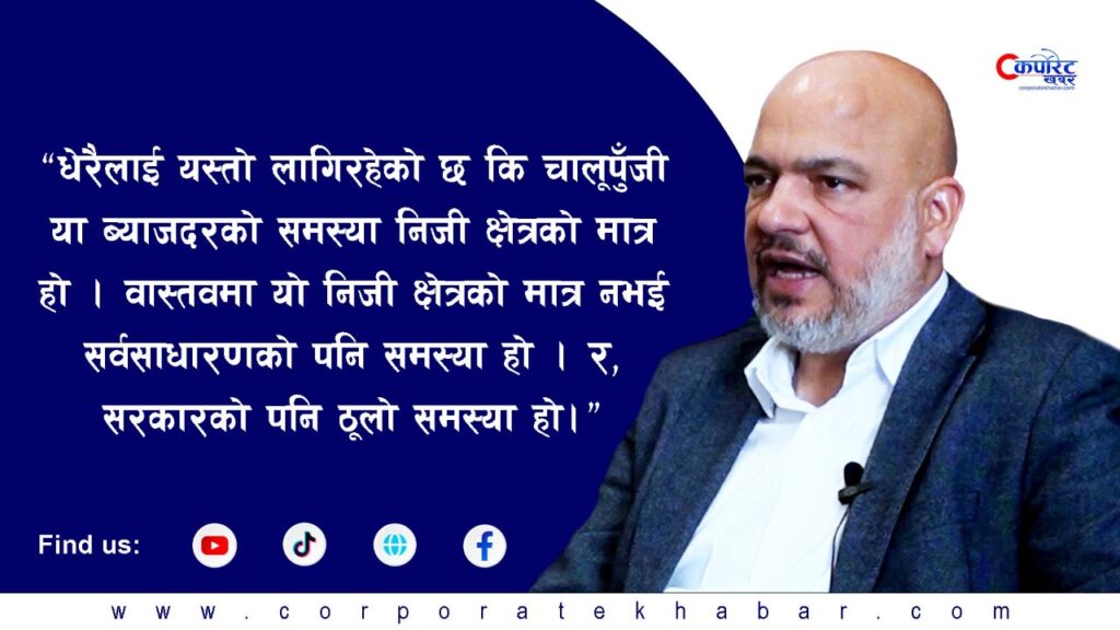 काठमाडाैं । पछिल्लो समय उद्योगी ब्यवसायीहरू आन्दोलित छन् । बैंकको ब्याजदर लगायतका विषयले मारमा पारेको भन्दै आन्दोलनमा उत्रिएका हुन् । बढ्दो ब्याजदरसँगै नेपाल राष्ट्र बैंकबाट जारी गरिएको चालूपुँजी कर्जासम्बन्धी मार्गदर्शनले झन् थला पारेको ब्यवसायीहरू बताउँछन्। आमनिर्वाचनअघि उद्योगी ब्यवसायीहरूले बैंकविरुद्ध सडक आन्दोलन नै गरे । चर्काे ब्याजदरले ब्यवसायनै बन्द गर्नुपर्ने अवस्था आएको भन्दै सो आन्दोलनमा मूलतः … Continue reading आन्दोलनका लागि हाम्रो ‘एक्सन-प्लान’ बनिसकेको छ: अध्यक्ष गाेल्छा (अन्तर्वार्ता)