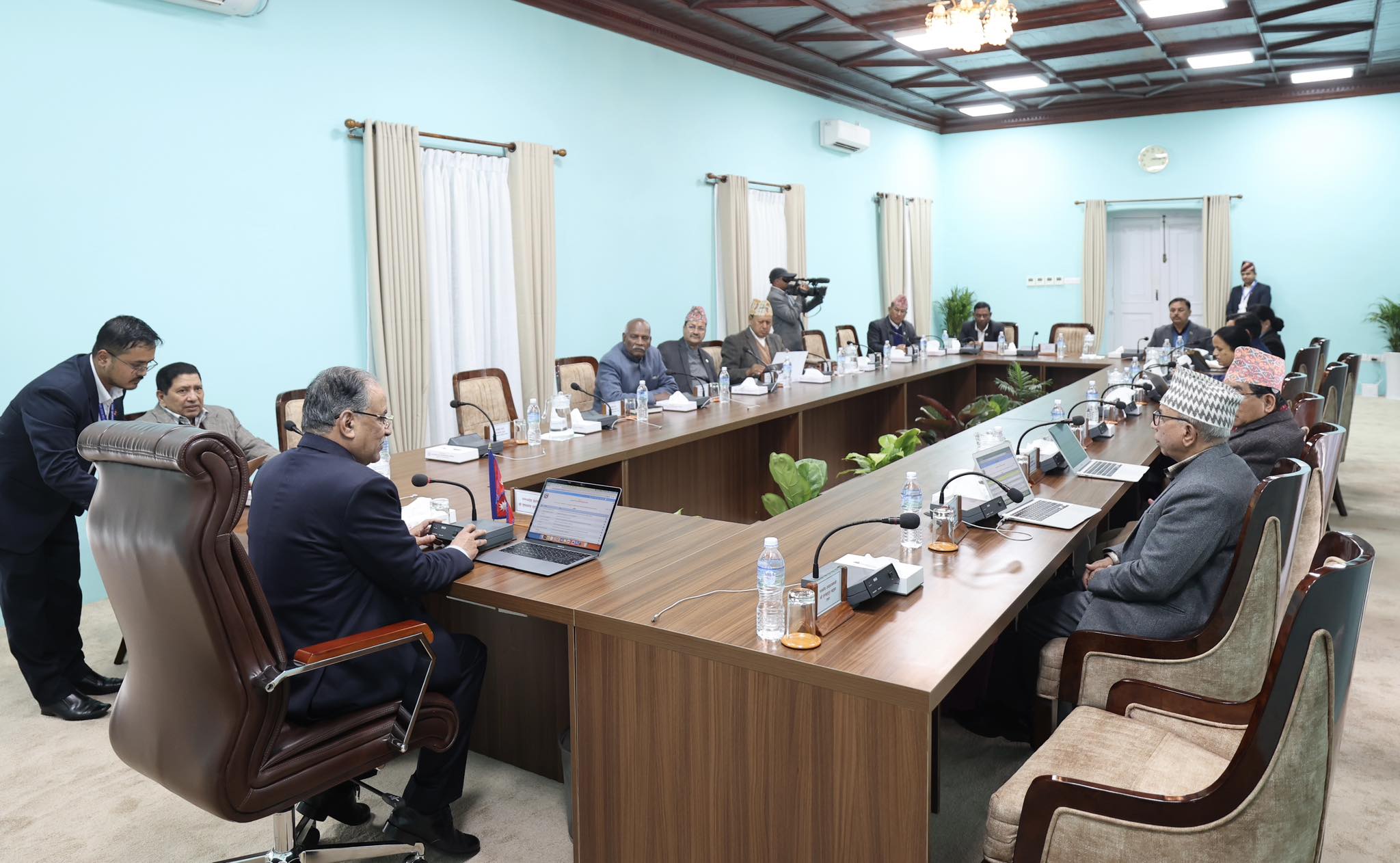 काठमाडौं । मन्त्रिपरिषद्को नियमित बैठक सिंहदरबारस्थित प्रधानमन्त्री तथा मन्त्रिपरिषद्को कार्यालयमा बसिरहेको छ ।