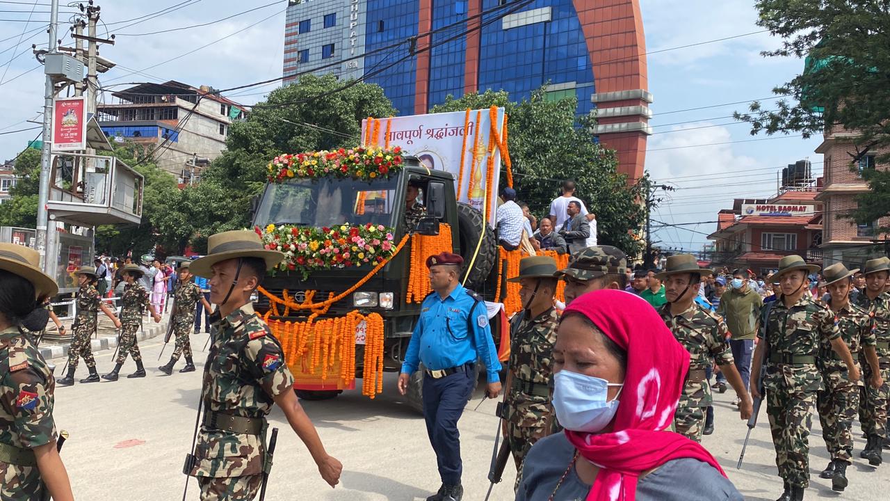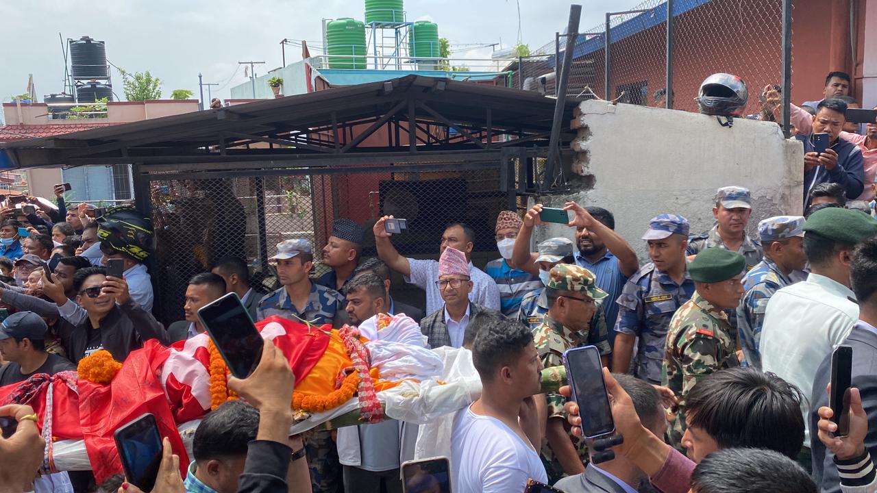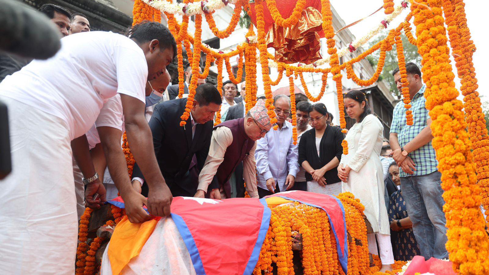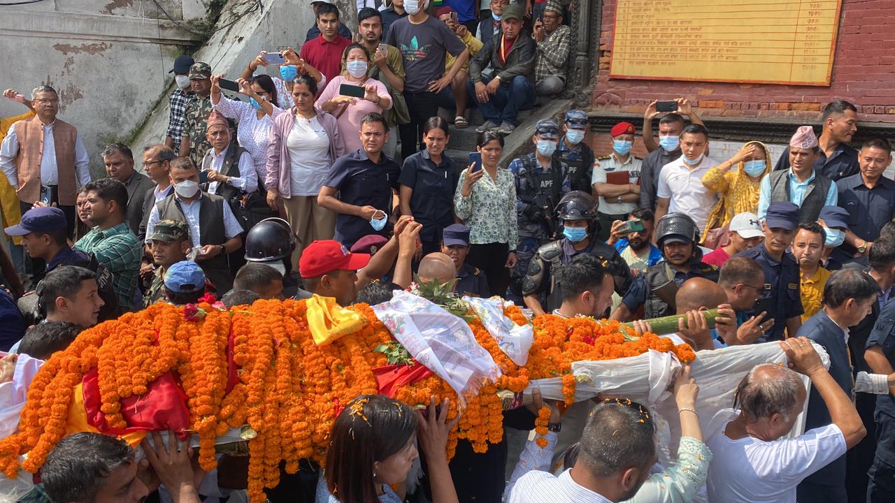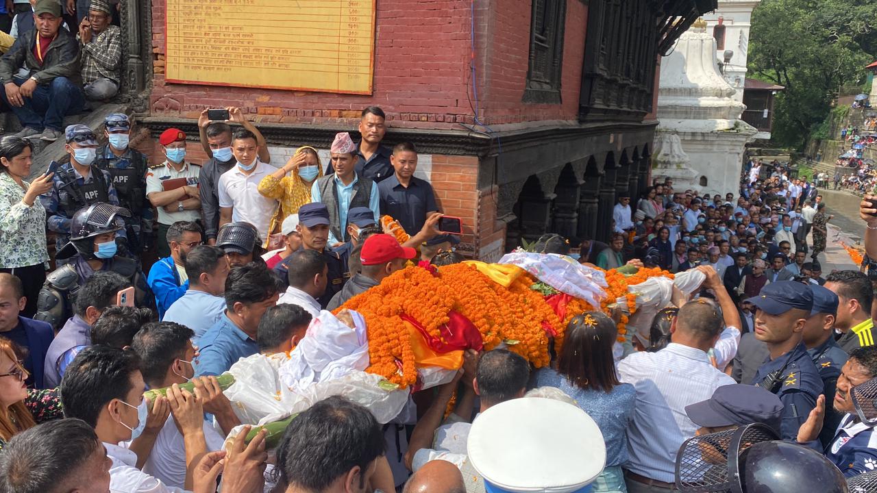 काठमाडौं । प्रधानमन्त्री पुष्पकमल दाहाल ‘प्रचण्ड’ पत्नी सीता दाहालको राजकीय सम्मानसहित अन्त्येष्टि गरिएको छ । पशुपति आर्यघाटमा आज राजकीय सम्मानसहित अन्त्येष्टि गरिएको हो ।