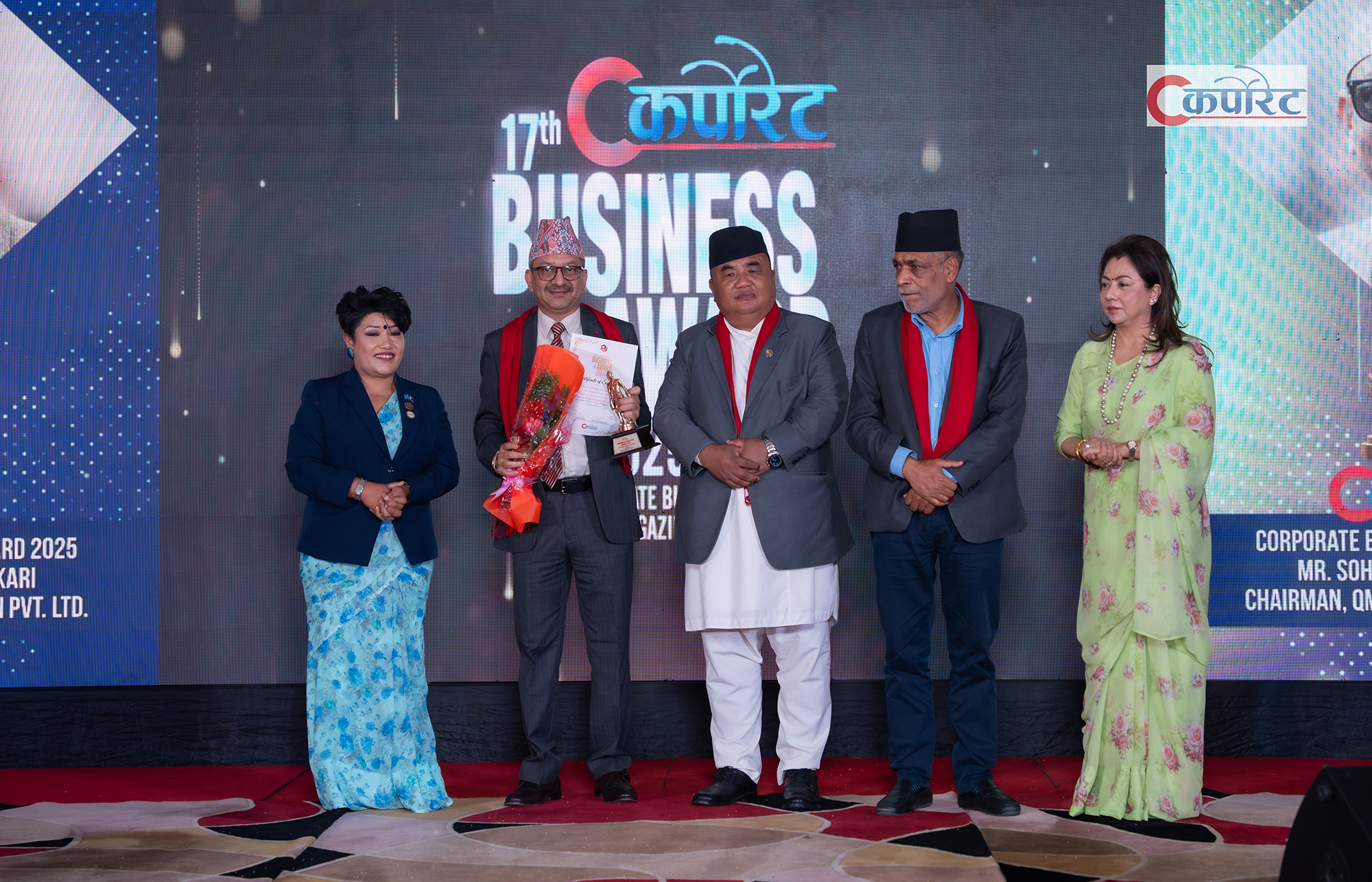 बिहीबार काठमाडौंको लाजिम्पाटस्थित र्याडिसन होटेलमा आयोजित ‘कर्पोरेट बिजनेश अवार्ड, २०२५’ समारोहमा उहाँलाई सो अवार्ड प्रदान गरिएको कर्पोरेट म्यागजिनका संस्थापक सम्पादक उज्वलजंग शाहले जानकारी दिनुभयो ।
