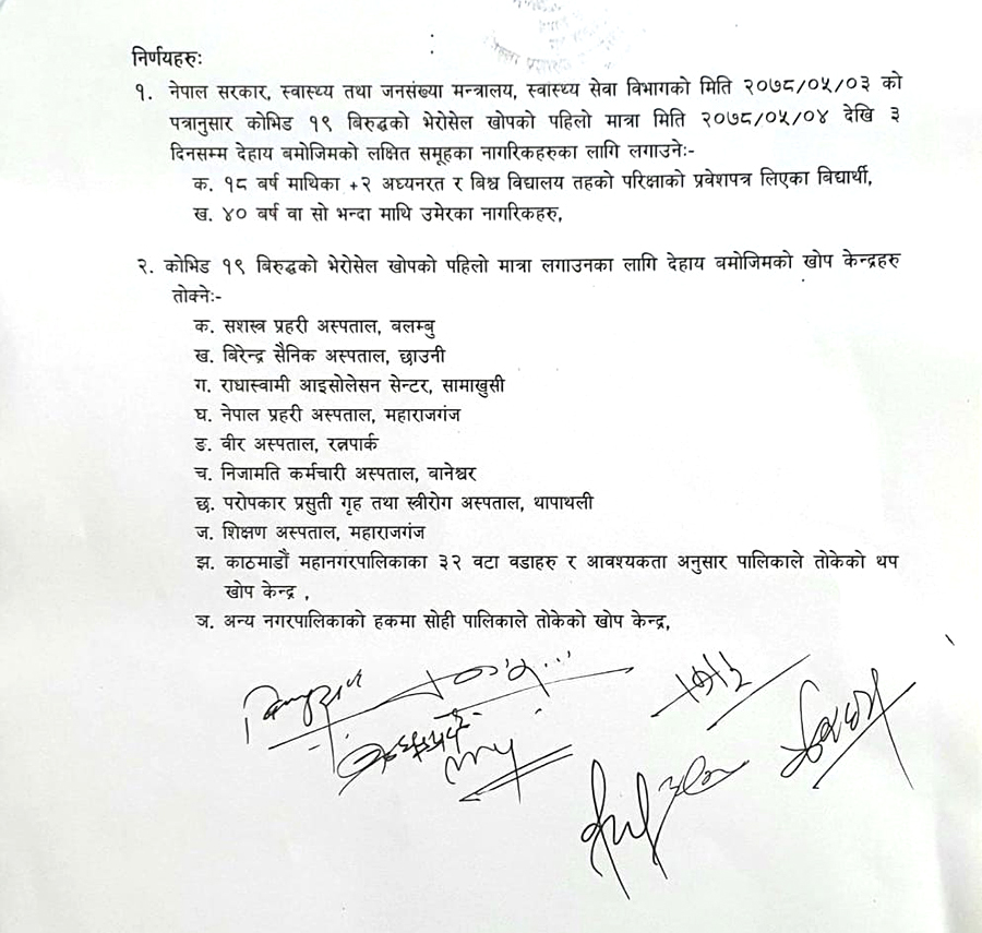 हेर्नुहोस् खोपकेन्द्रसहितको थप जानकारी स्वास्थ्य कार्यालय काठमाडौंले जारी गरेको सूचनामा–
