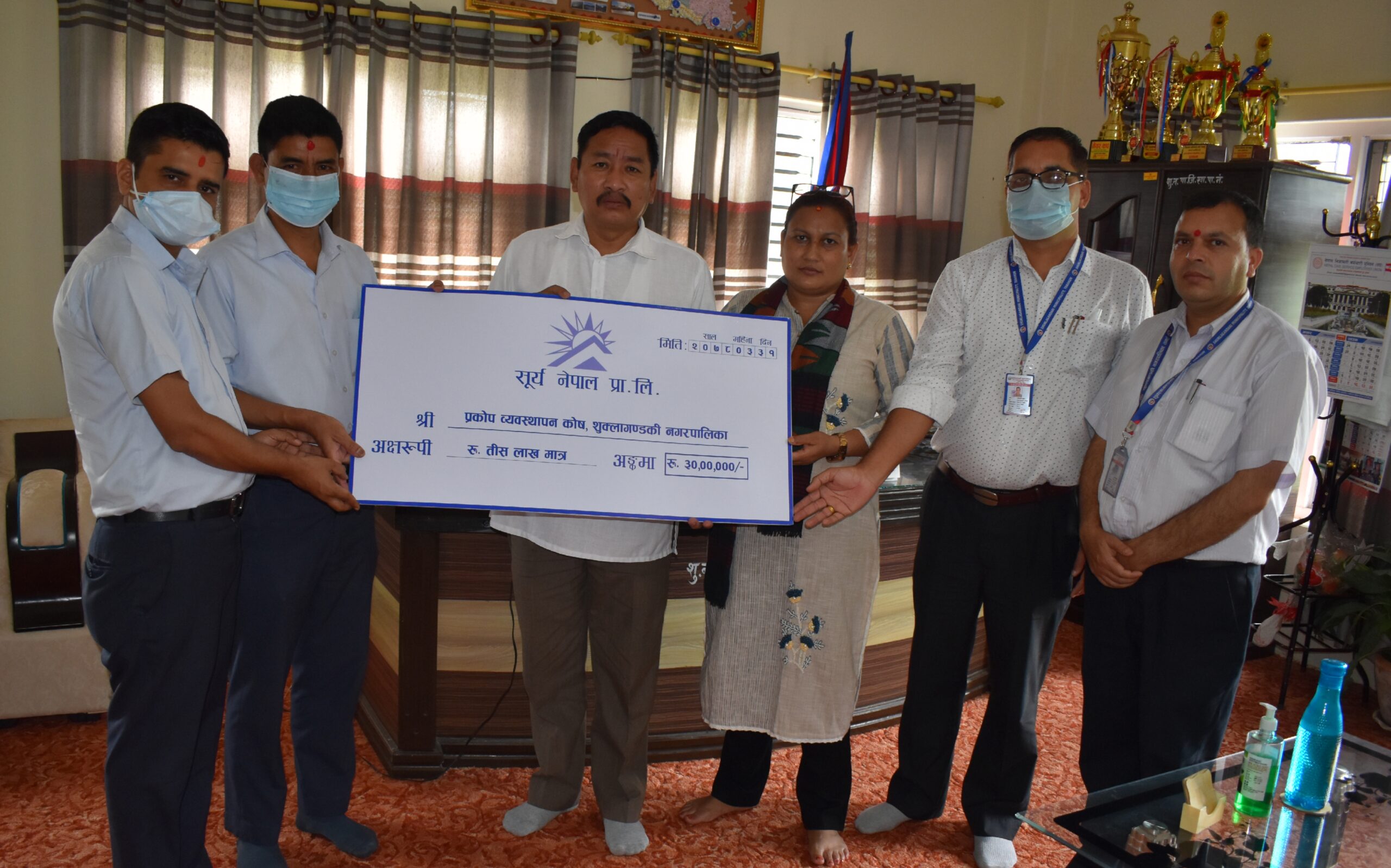 काठमाडौं । सूर्य नेपाल प्रालिले तनहुँको शुक्लागण्डकी नगरपालिका र म्याग्दे गाउँपालिकाको ‘कोभिड–१९ प्रकोप व्यवस्थापन कोष’मा क्रमशः २० लाख रूपैयाँ र ३० लाख रूपैयाँ सहयोग गरेको छ ।