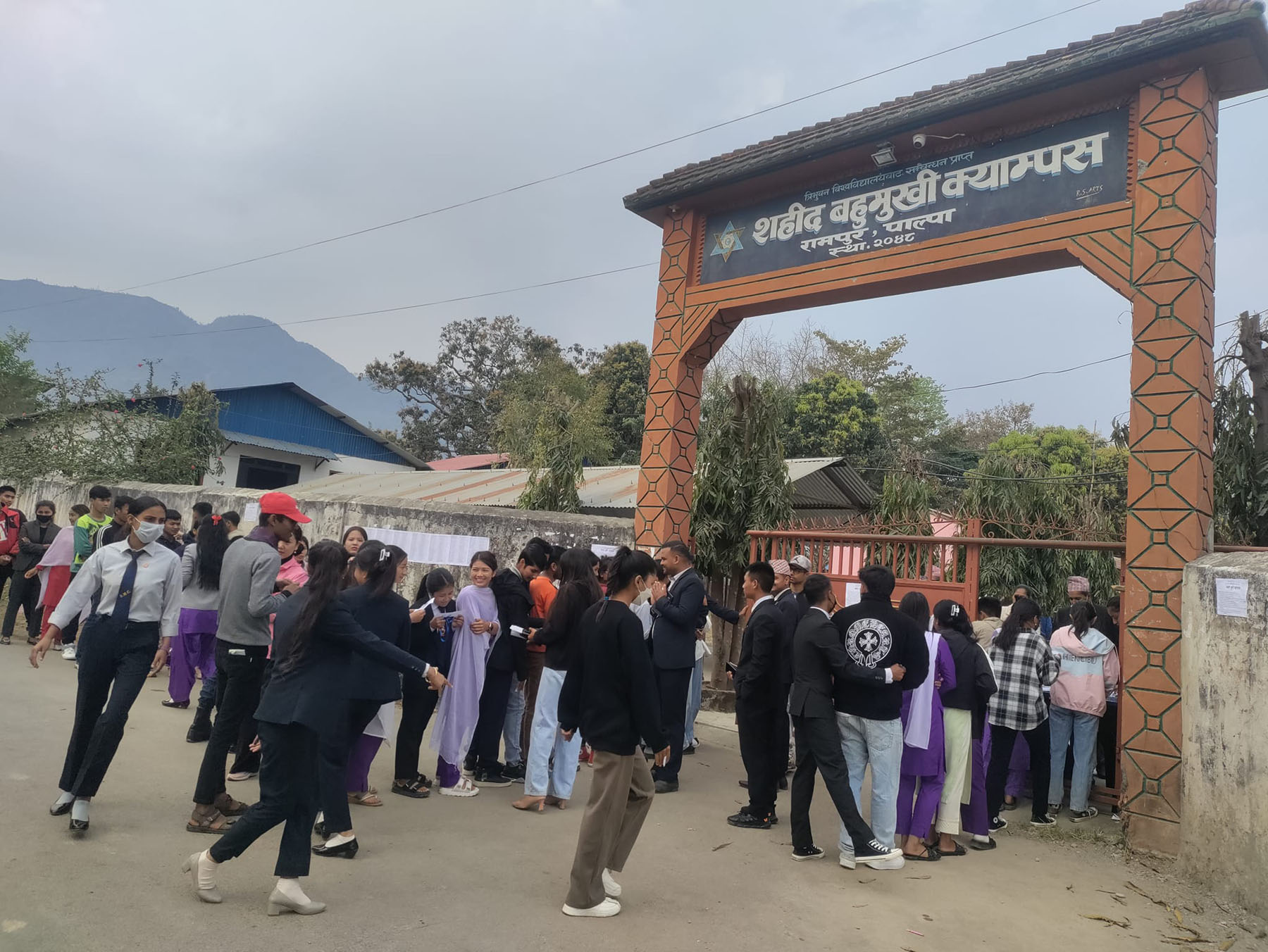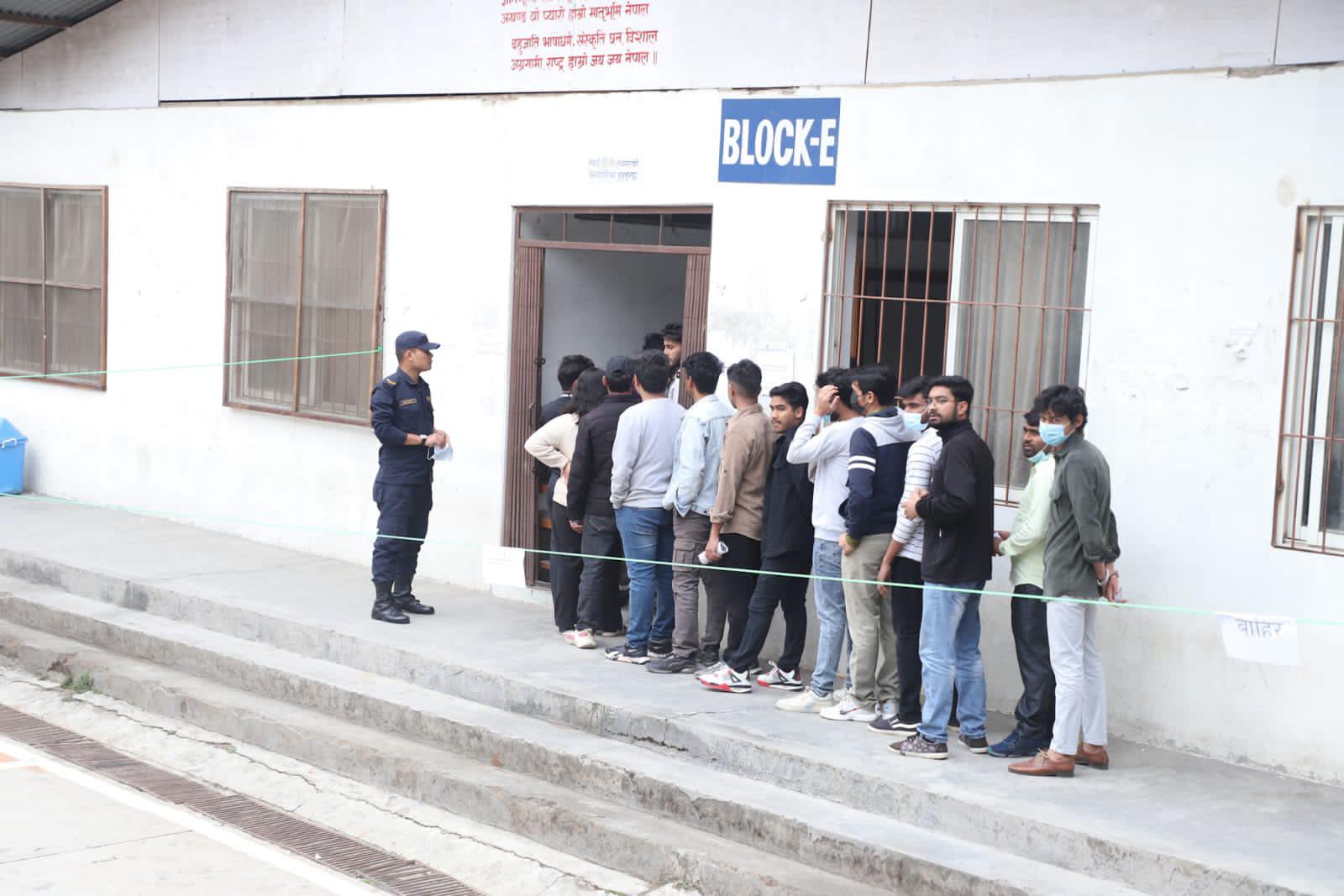 शहीद बहुमुखी क्याम्पस रामपुर पाल्पामा भएको स्वतन्त्र विद्यार्थी युनियनको निर्वाचनमा मतदान गर्न लामबद्ध मतदाता । तस्वीर : सुशीला रेग्मी/रासस