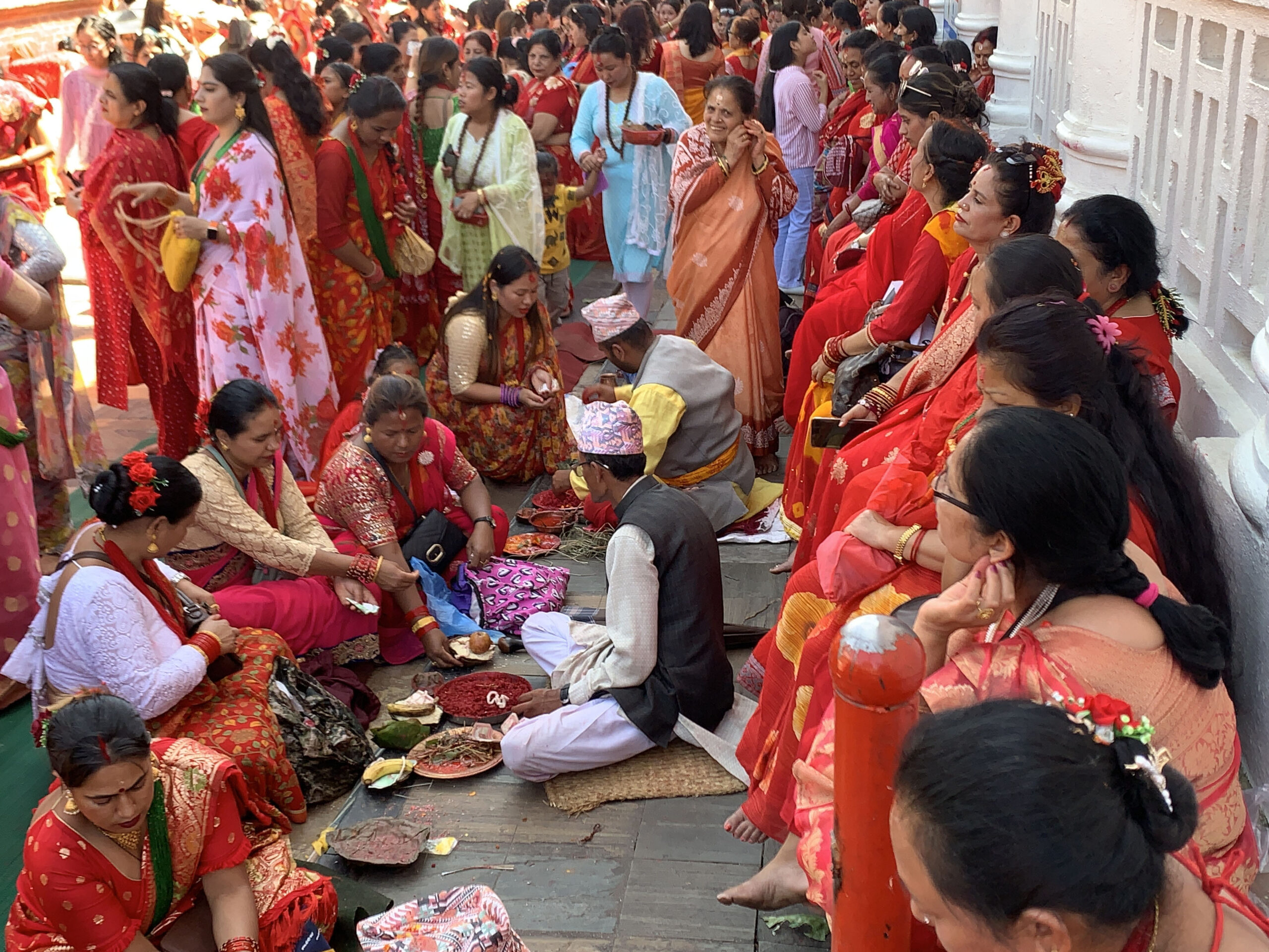 राता कुर्ता–सुरुवालमा सजिएका उनीहरु तीज गीतमा केहीबेर नाचेर नेपाली व्रतालु महिलाहरुलाई साथ दिए । आफूहरुसँगै विदेशी महिलाहरु पनि नाच्न थालेपछि नेपाली महिलाहरुले झन् रमाइलो मान्दै उनीहरुलाई नाच्न हौसाएका थिए ।