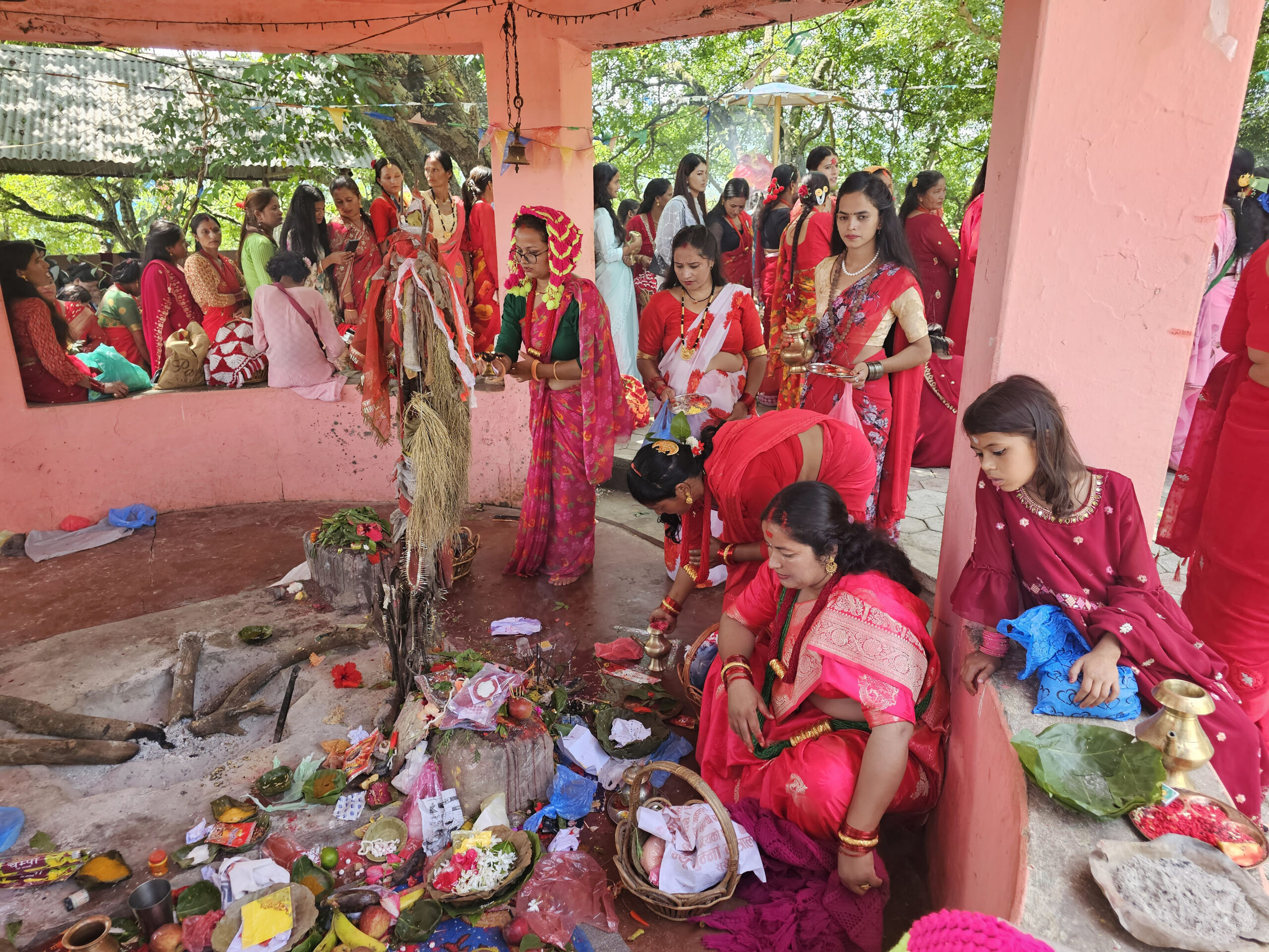 पार्वती समस्यामा परेको थाहा पाएपछि उनका साथीहरूले हरण गरेर लगी कसैले नदेख्ने ठाउँमा लुकाएर राखिदिएको र साथीहरूले लुकाएकै ठाउँमा पार्वतीले निराहार व्रत गरी महादेवलाई पतिका रूपमा प्राप्त गरेको धार्मिक मान्यता छ ।
