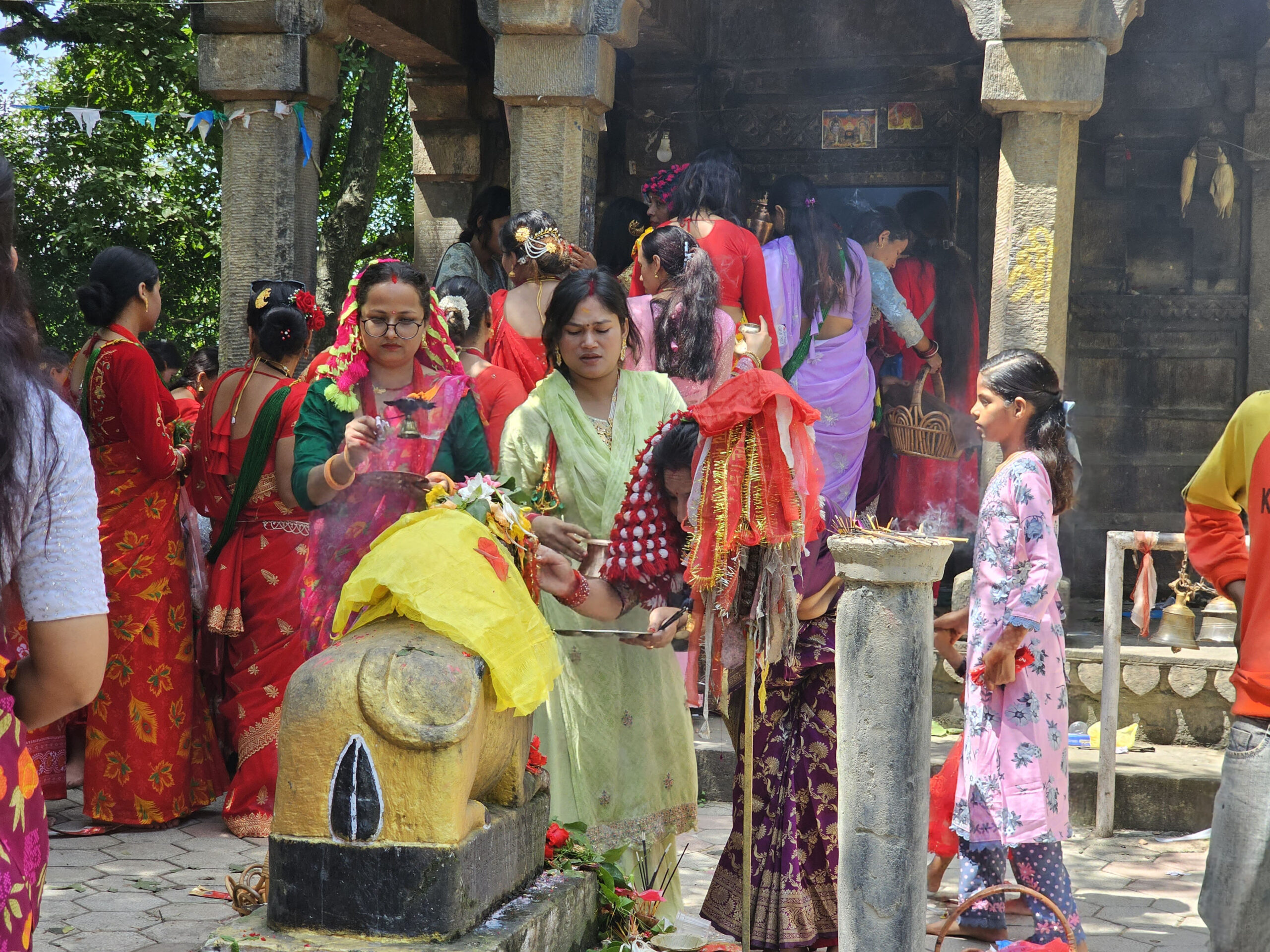 सुर्खेतको वीरेन्द्रनगर–९ लाटीकोइलीमा रहेको शिव मन्दिरमा तिजको अवसरमा भगवान शिवको आराधना गर्दै भक्तजन । तस्बिर ः सुरेश आचार्य÷रासस