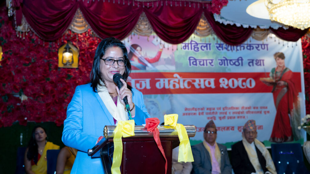 प्रमुख अतिथि पशुपति शमशेर जबराले महिला सशक्तीकरण गर्ने कार्यमा नेपालको पार्टीहरू चुक्दै गएको बताए । उनले मलिलाहरूले गरेको काम कारबाहीहरूमा राज्यले संरक्षकको भूमिका निभाउनपर्ने विचार व्यक्त गरे ।
