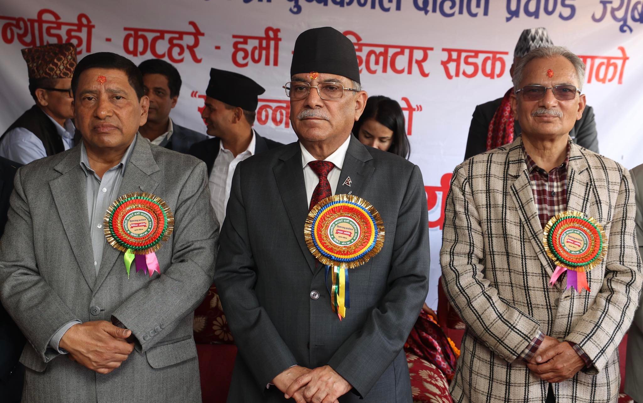 प्रधानमन्त्री प्रचण्डसँगै पूर्वप्रधानमन्त्री डा. बाबुराम भट्टराई र उपप्रधानमन्त्री एवम् भौतिक पूर्वाधार तथा यातायात मन्त्री नारायणकाजी श्रेष्ठ गोरखा पुगेका थिए।