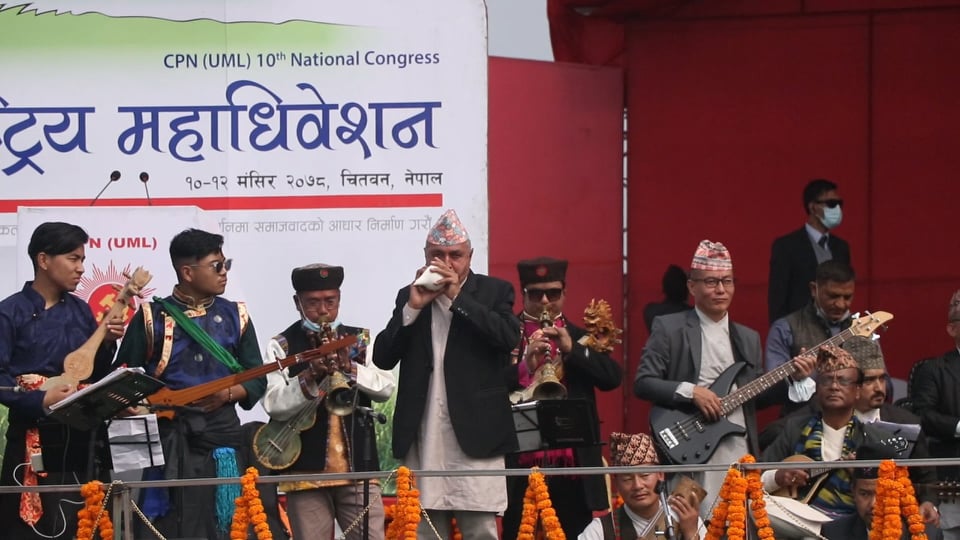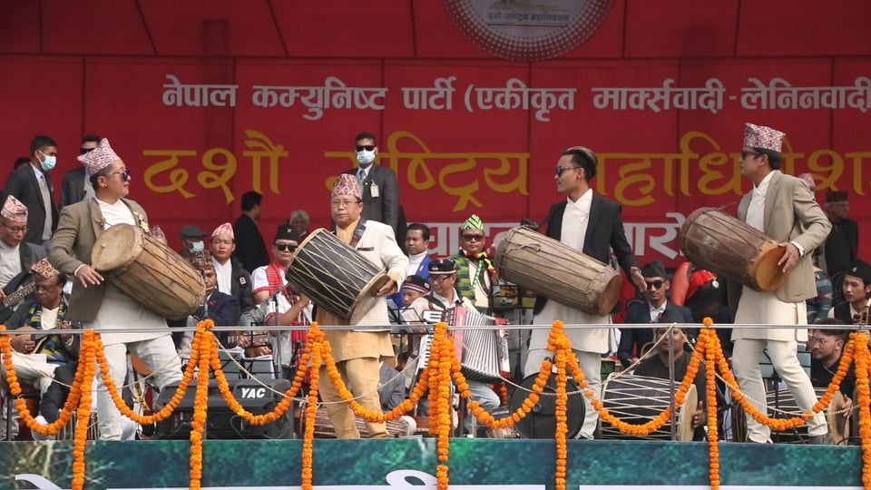 नारायणी नदी किनारमा शुक्रबार नेकपा एमालेको १० औँ महाधिवेशन उद्घाटन समारोहमा नेपाली लोकबाजाहरूको आर्केष्टा गुञ्जयमान बनेको हो । राष्ट्रिय जनसांस्कृतिक महासंघद्वारा प्रस्तुत गरिएको बृहत् सांस्कृतिक कार्यक्रममा नेपालमै पहिलो पटक नेपाली परम्परागत लोकबाजाहरूको आर्केष्टा प्रस्तुत गरिएको महासंघका अध्यक्ष खगेन्द्र राईले बताउनुभयो ।