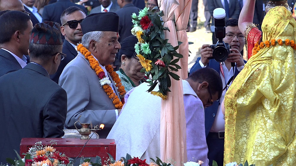 राष्ट्रपति पौडेलका साथै प्रथम महिला सविता पौडेलले गुहेश्वरी मन्दिरअघि बागमती किनारामा निर्माण गरिएको छठघाट पुगेर अस्ताउँदो सूर्यलाई अर्घदान गरेका हुन् ।