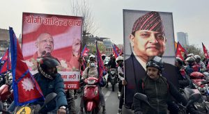 काठमाडौं । गत आइतबार नेपालको सङ्घीय राजधानी काठमाडौँमा राजसंस्था र हिन्दुराष्ट्र पुनर्स्थापनाका पक्षमा अहिलेसम्मकै ठूलो दाबी गरिएको प्रदर्शन भयो । प्रदर्शनमा पूर्वराजा ज्ञानेन्द्र शाह स्वयम् सहभागी थिए । पोखरामा रहेका उनी सो दिन त्यताबाट काठमाडौँ आएका थिए ।जसै उनी त्रिभुवन अन्तर्राष्ट्रिय विमानस्थल आइपुगे, त्यहाँ राष्ट्रिय प्रजातन्त्र पार्टी (राप्रपा) का नेता तथा कार्यकर्तासहित सयौँ समर्थकहरूले उनको … Continue reading राजसंस्था पुनर्स्थापनाको प्रदर्शनमा योगी आदित्यनाथको तस्बिर प्रयोग हुनुको अन्तर्य