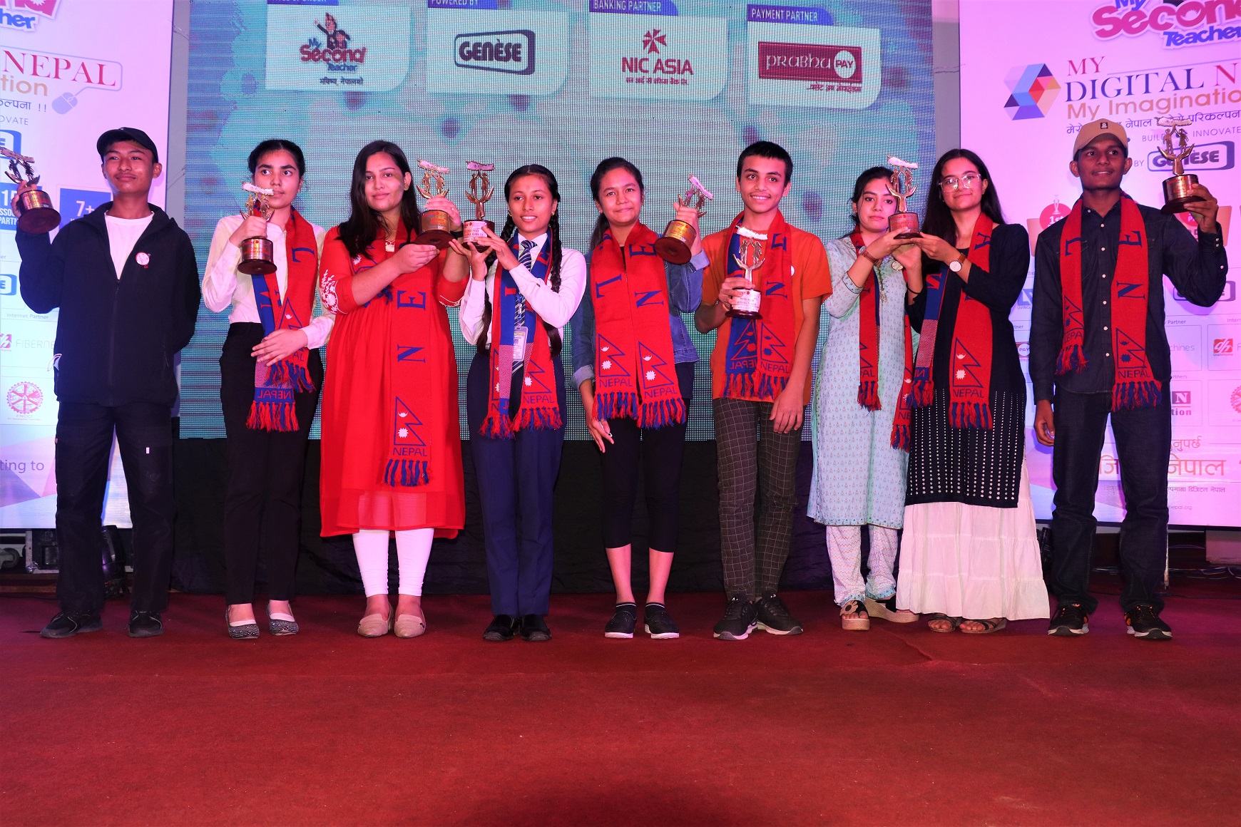 असिमले ‘डिजिटल नेपाल : एक अमुक सपना’ शीर्षकको कविता लेखेका थिए भने अनिषले ‘सुन्दर शान्त विशाल, मेरो परिकल्पनाको डिजिटल नेपाल’ शीर्षकको भिडियो प्रिजेन्टेशन बनाएका थिए । त्यस्तै, उद्धवले ‘वे टु डिजिटल नेपाल’ शीर्षकको निबन्ध र विशेष्ताले ‘माइ डिजिटल नेपाल’ थिममा आर्ट गरेकी थिइन् । तेस्रो हुने सबै जनाले जनही नगद २५ हजार रूपैयाँ प्राप्त गरेका छन् ।