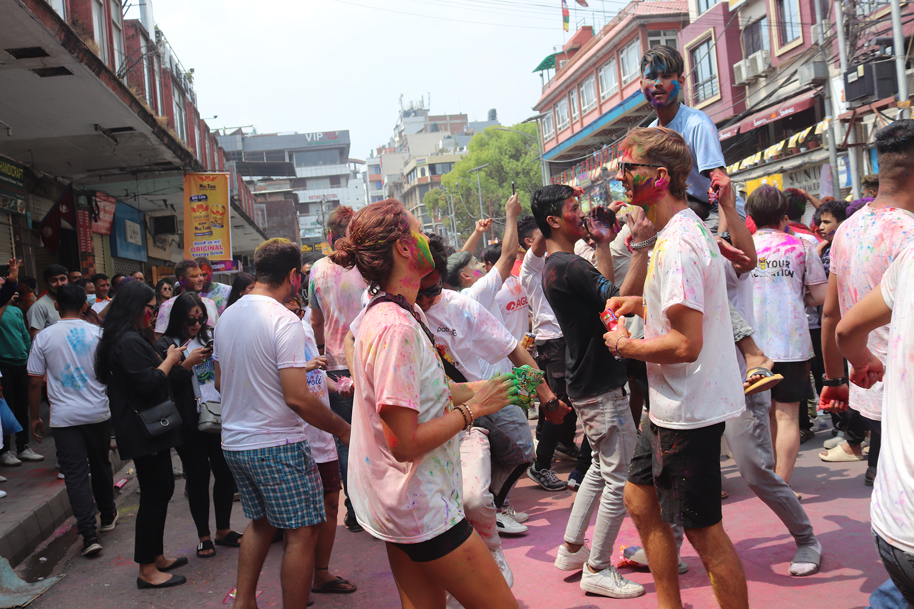 विभिन्न देशका पर्यटकहरुले एकापसमा रङ्ग दलेर होलीमा रमाइलो गरे । होली महोत्सवअन्तर्गत अम्मट चौतारामा आन्तरिक तथा बाह्य पर्यटकलाई सहभागी गराई सामूहिक रुपमा होली खेलिएको थियो । पञ्चेबाजा र गीत–सङ्गीतका साथमा होली मनाइएको रेवान पोखराका अध्यक्ष नरेशबहादुर भट्टराईले बताए ।