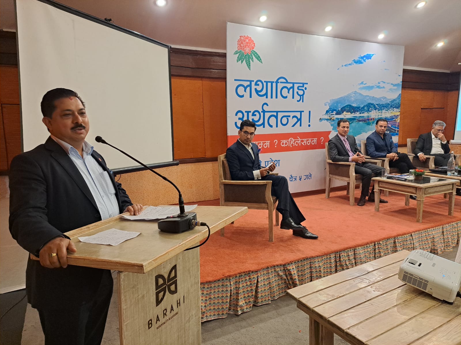 पाेखरा । देशको अर्थतन्त्रलाई सुधार गर्न नीतिगत सुधार गर्नुको विकल्प नभएको सरोकारबालाहरुले जोड दिएका छन्। आईतवार पोखरामा आयोजित ‘लथालिङ्ग अर्थतन्त्र कहाँसम्म कहिलेसम्म’ विषयक अन्तरक्रिया कार्यक्रममा वक्ताहरुले सरकार र नीति निर्माताहरुले तत्काल ध्यान दिनुपर्ने बताएका हुन्।