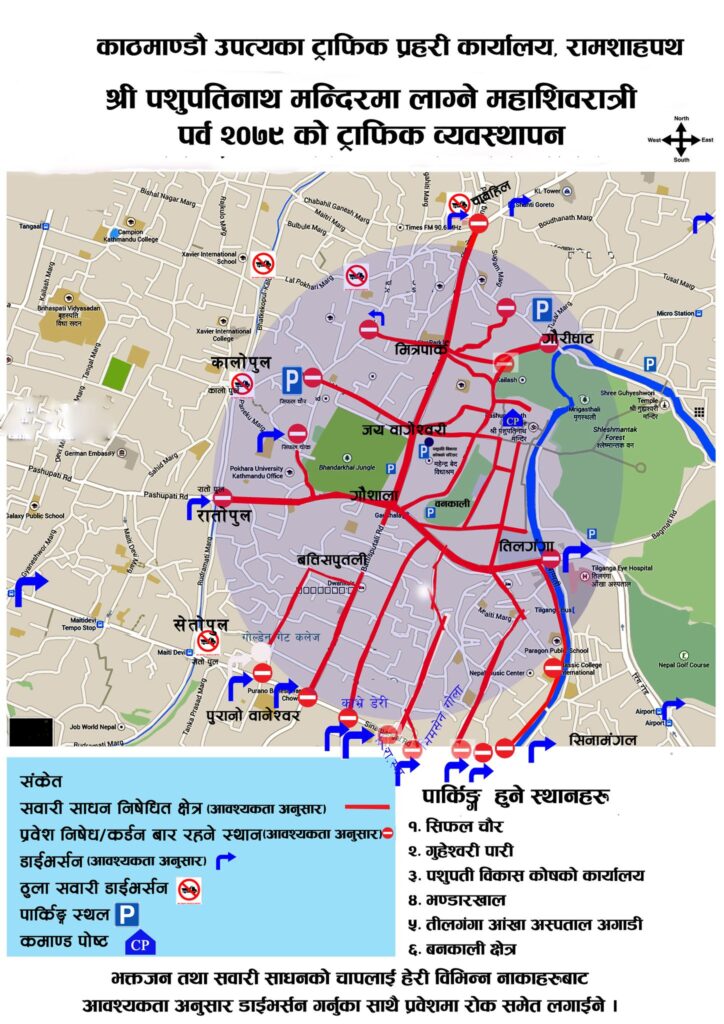 उक्त क्षेत्रमा शुक्रबार रातिदेखि नै दर्शनार्थीहरूको भिड बढी हुने भएकाले सवारी साधनलाई डाईभर्सन गरिने महाशाखाले जनाएको छ ।