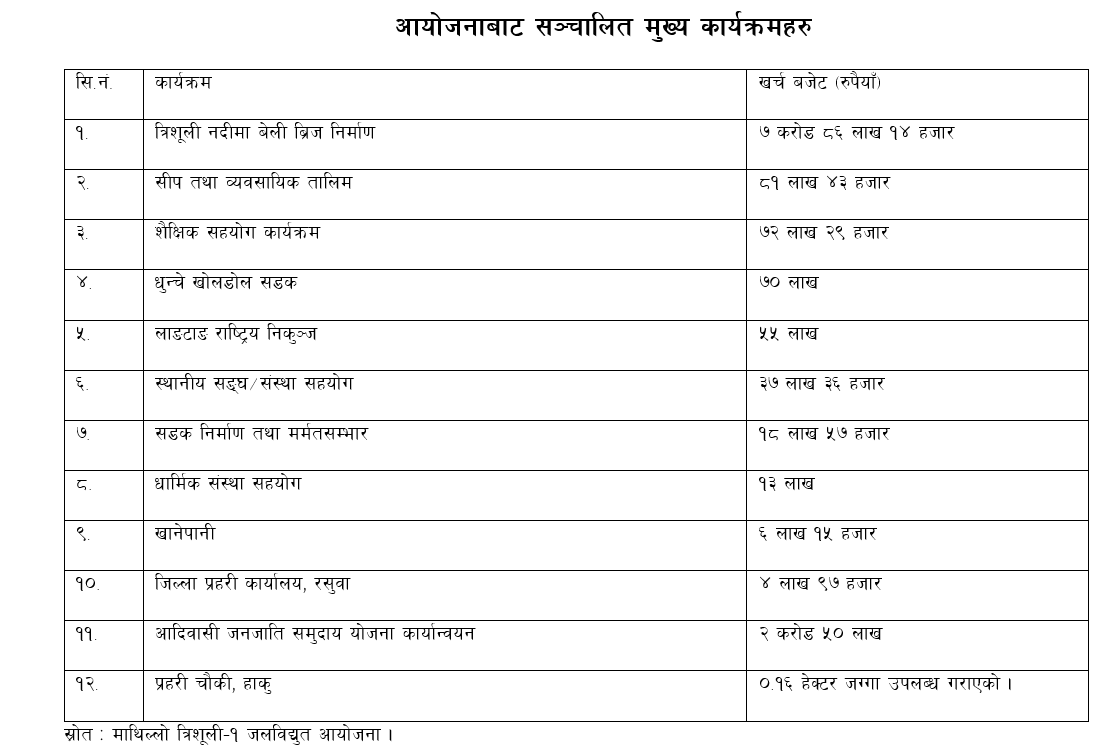 काठमाडौं। रसुवा जिल्लामा निर्माणाधीन २१६ मेगावाट जडि क्षमताको माथिल्लो त्रिशूली–१ जलविद्युत आयोजना प्रभावित क्षेत्रमा सामुदायिक सहयोग कार्यक्रम मार्फत हालसम्म करिब १७ करोड रुपैयाँ खर्च गरिएको छ ।